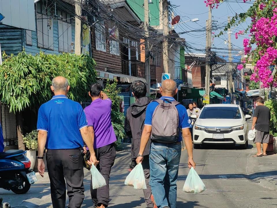 ด้าน คุณพวงเพ็ญ สุนทรศิริ CPF จิตอาสาและคณะกรรมชมรมฯ กล่าวว่า การลงพื้นที่ทำให้เห็นความหลากหลายของกลุ่มคน การช่วยเหลือที่แตกต่างกัน และสัมผัสถึงความจริงใจของชาวชุมชนตลอดทาง ขอชื่นชมในการอุทิศตนและความเสียสละของครูเชาว์ เป็นตัวอย่างที่ดีแก่เด็กๆ และเป็นผู้นำที่ดีแก่คนที่นี่ หวังว่าอาหารบริษัทฯ นำมาแจก จะเป็นกำลังใจให้ทุกท่าน