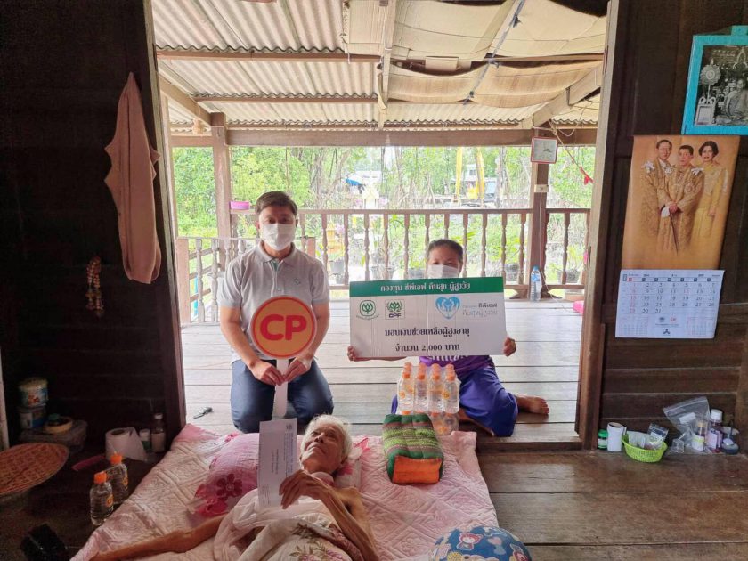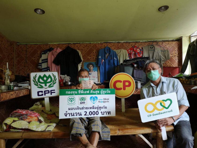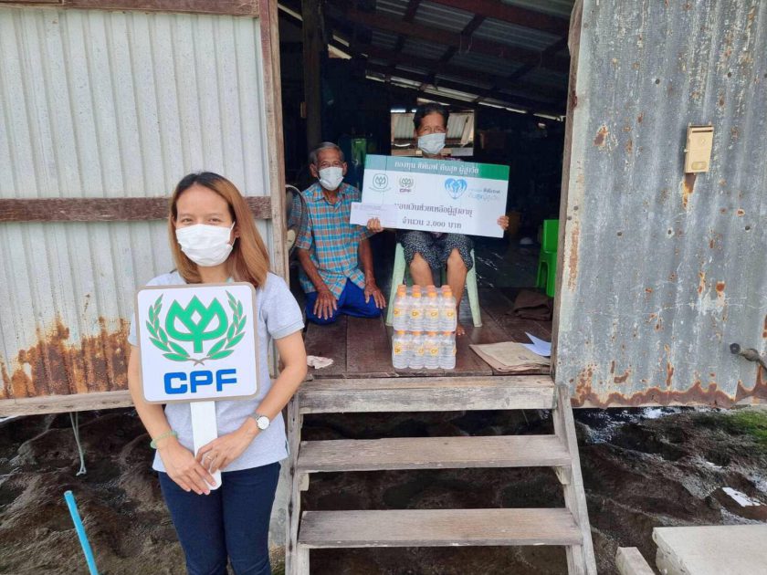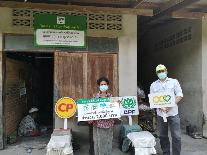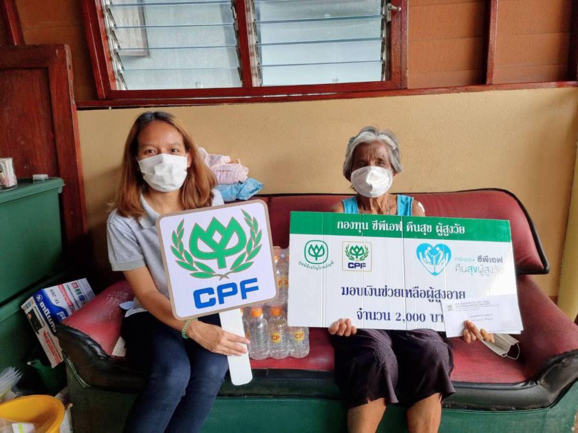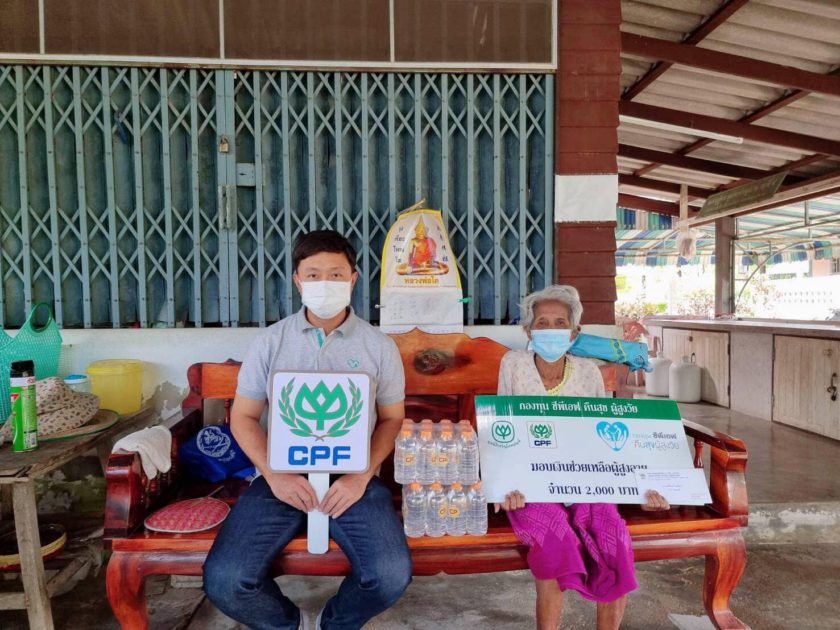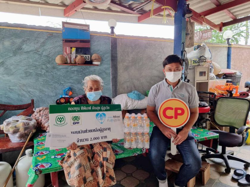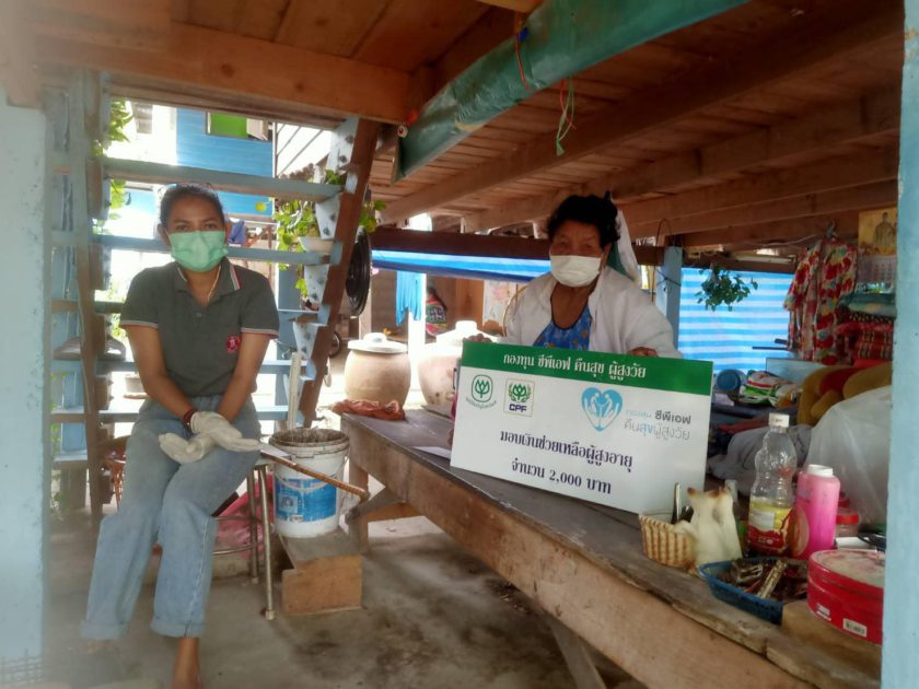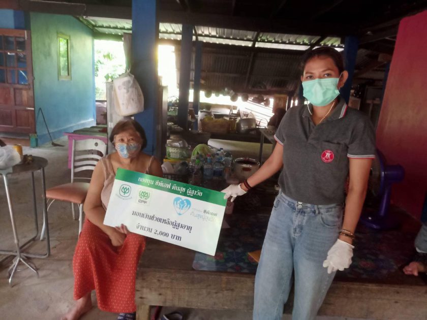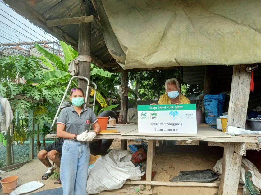 ขณะที่ คุณสะแวง เทียมเงิน ผู้บริหารและพนักงาน CPF โรงงานอาหารสัตว์ท่าเรือ จ.พระนครศรีอยุธยา มอบเงินช่วยเหลือในโครงการ “ซีพีเอฟ คืนสุข ผู้สูงวัย” ให้ผู้สูงอายุในพื้นที่โดยรอบโรงงาน เพื่อบรรเทาความเดือดร้อนจากสถานการณ์โควิด