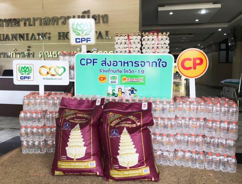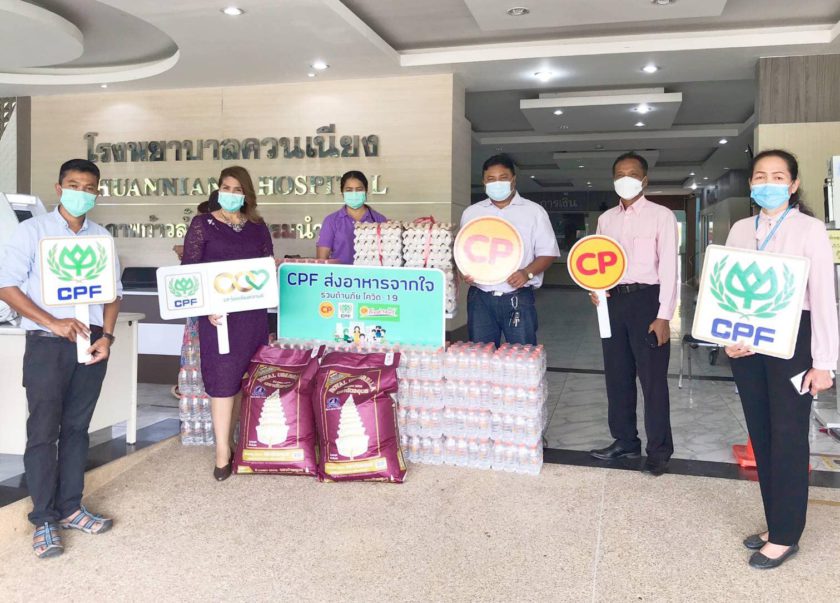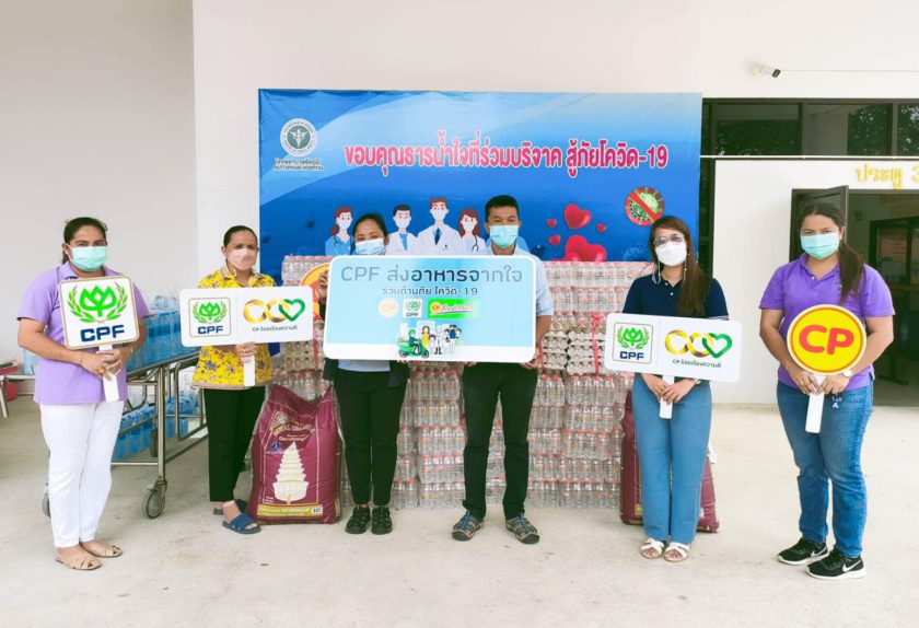 คุณไกรวงษ์ สุทธิรักษ์ ผู้จัดการ และชาว CPF จิตอาสา เป็นตัวแทนบริษัทฯ มอบผลิตภัณฑ์อาหารจาก CPF ได้แก่ ไข่ไก่ 1,500 ฟอง, น้ำดื่มซีพี 4,800 ขวด และข้าวสารตราฉัตร 4 กระสอบ ภายใต้โครงการ “CPF ส่งอาหารจากใจ ร่วมต้านภัยโควิด-19” ตามนโยบายเครือซีพี เพื่อนำไปประกอบอาหารปรุงสุกพร้อมทานให้แก่บุคลากรทางการแพทย์และผู้ป่วยโควิด โรงพยาบาลควนเนียง และ โรงพยาบาลรัตภูมิ จ.สงขลา โดยมีผู้แทนโรงพยาบาล รับมอบ