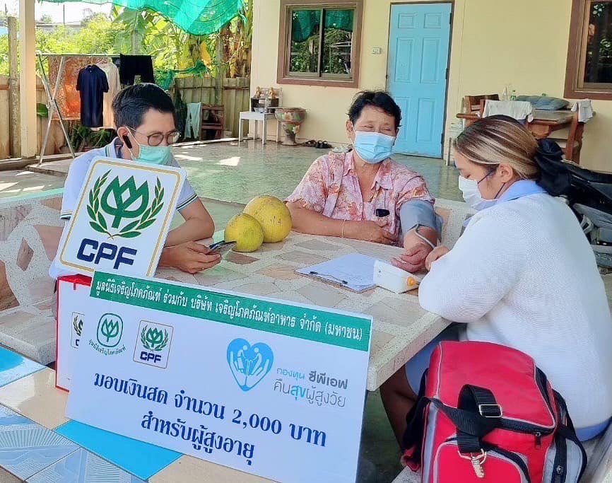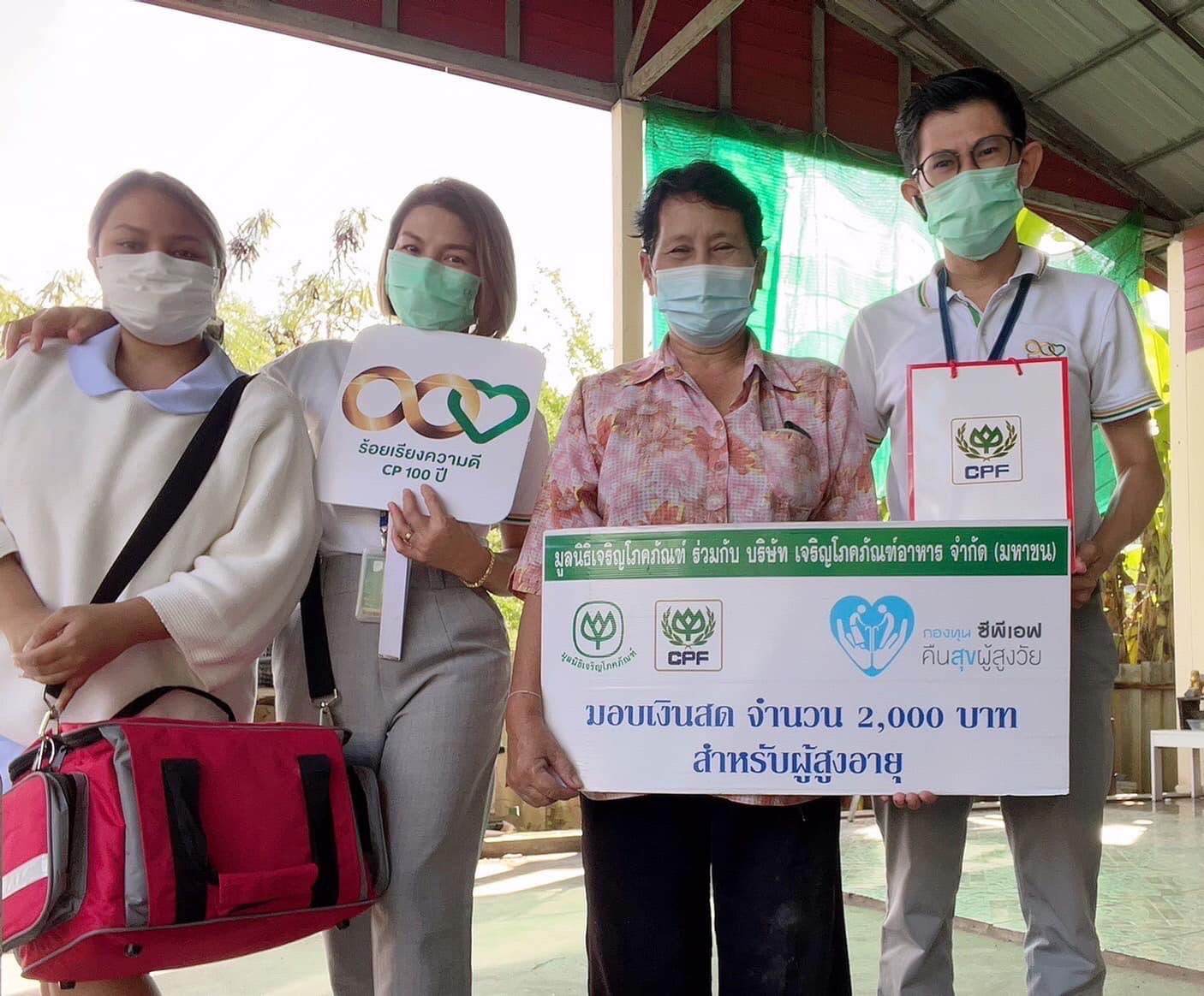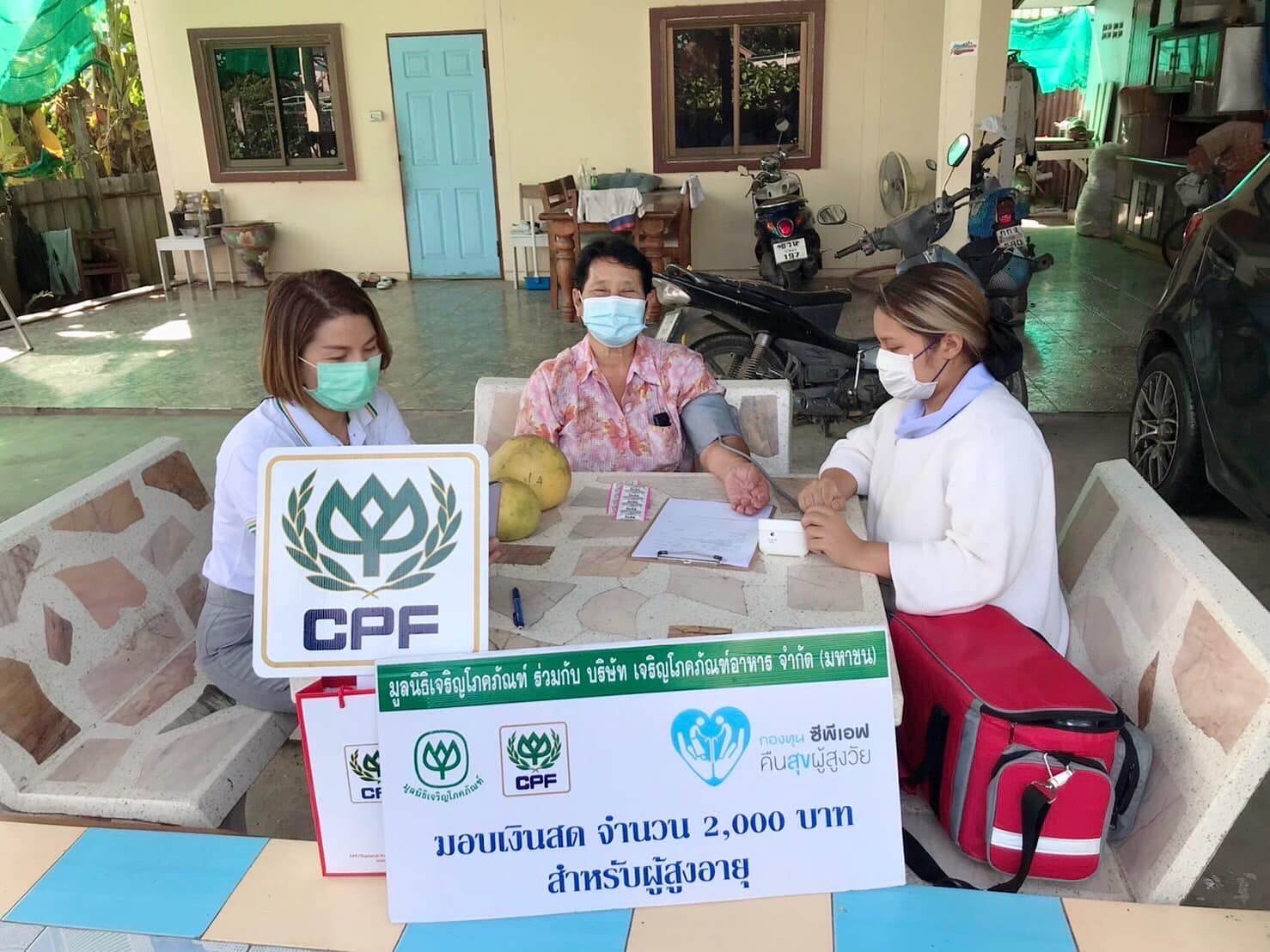 คุณเจษฎาพร รัฐประสาท ผู้จัดการฝ่ายธุรการ และคุณบุญชิตา โทษาธรรม ฝ่ายคลังสินค้า CPF โรงงานแปรรูปเนื้อไก่ สระบุรี เป็นผู้แทนบริษัทฯ ร่วมกับ คุณชาญชัย พิมพ์ละมาตย์ หัวหน้าฝ่ายสวัสดิการสังคม อบต.ตาลเดี่ยว และพยาบาล เดินหน้าโครงการ “ซีพีเอฟ คืนสุข ผู้สูงวัย” ออกเยี่ยม พร้อมตรวจสุขภาพในเบื้องต้น และมอบเงินช่วยเหลือให้ผู้สูงวัย รวม 8 ท่าน ในพื้นที่ ต.ตาลเดี่ยว และ ต.บ้านป่า จ.สระบุรี เพื่อบรรเทาความเดือดร้อนและใช้ดำรงชีพ