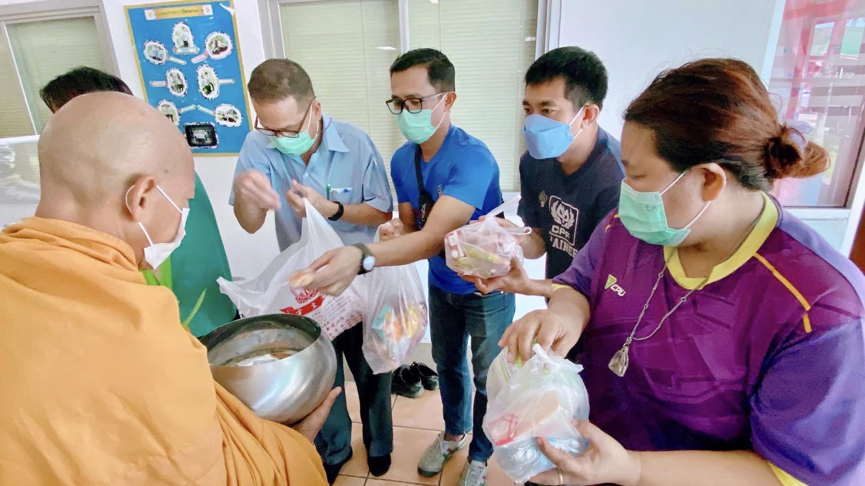 คุณวัฒนา อาจเอื้อ ผู้จัดการทั่วไป พร้อมด้วย คณะผู้บริหาร และพนักงาน CPF โรงงานผลิตอาหารสัตว์น้ำบ้านบึง จ.ชลบุรี จัดพิธีทำบุญตักบาตรข้าวสารอาหารแห้งพระภิกษุสงฆ์ 9 รูป ถวายเป็นพระราชกุศล แด่พระบาทสมเด็จพระบรมชนกาธิเบศร มหาภูมิพลอดุลยเดชมหาราช บรมนาถบพิตร (ในหลวง ร.9) เนื่องในวันคล้ายวันสวรรคต 13 ตุลาคม