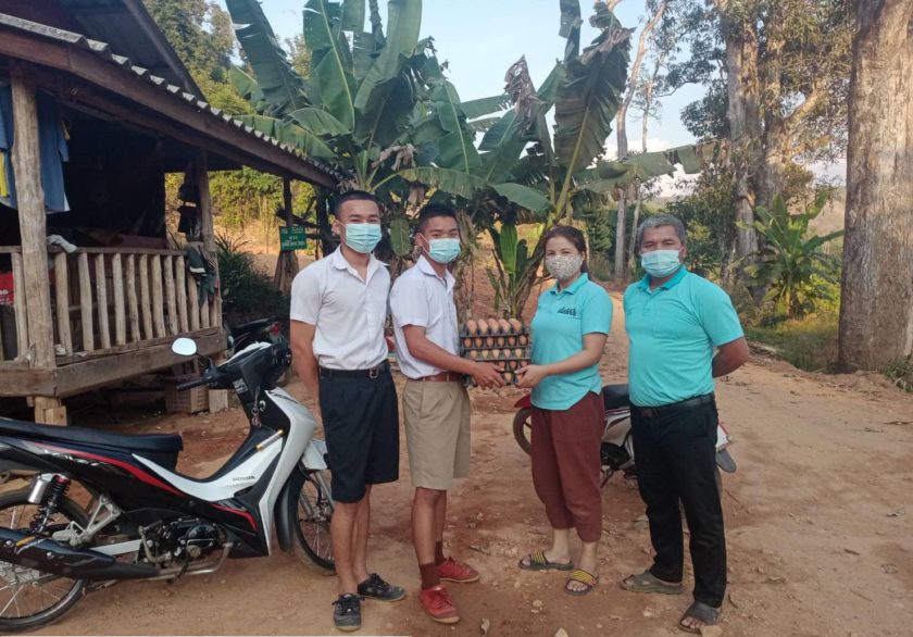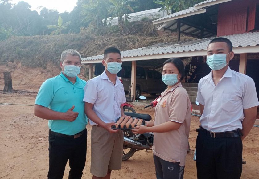 ด้วยสภาพความเป็นอยู่ของนักเรียนที่มีทั้งอยู่ประจำและไป-กลับ ในช่วงที่เพื่อนๆ หลายคนต้องอยู่บ้านบนดอย มีน้องๆ อีกกลุ่มหนึ่งรับอาสาอยู่ที่โรงเรียน เพื่อช่วยกันดูแลไก่ไข่ในโรงเรือน 400 ตัว ซึ่งปีนี้โรงเรียนเลี้ยงไก่ไข่เป็นรุ่นที่ 4 แล้ว นับจากที่โรงเรียนรับมอบโครงการเลี้ยงไก่ไข่เพื่ออาหารกลางวันนักเรียน จาก CPF และมูลนิธิเจริญโภคภัณฑ์พัฒนาชีวิตชนบท ตั้งแต่ปี 2559 ในช่วงโควิด โรงเรียนไม่ต้องส่งผลผลิตไข่ไก่เข้าโครงการฯ จึงต้องบริหารจัดการผลผลิต ผ่านช่องทางต่างๆ เช่น จำหน่ายให้ชุมชน แจกจ่ายให้ผู้สูงอายุ เพื่อเป็นแหล่งอาหารของชุมชน