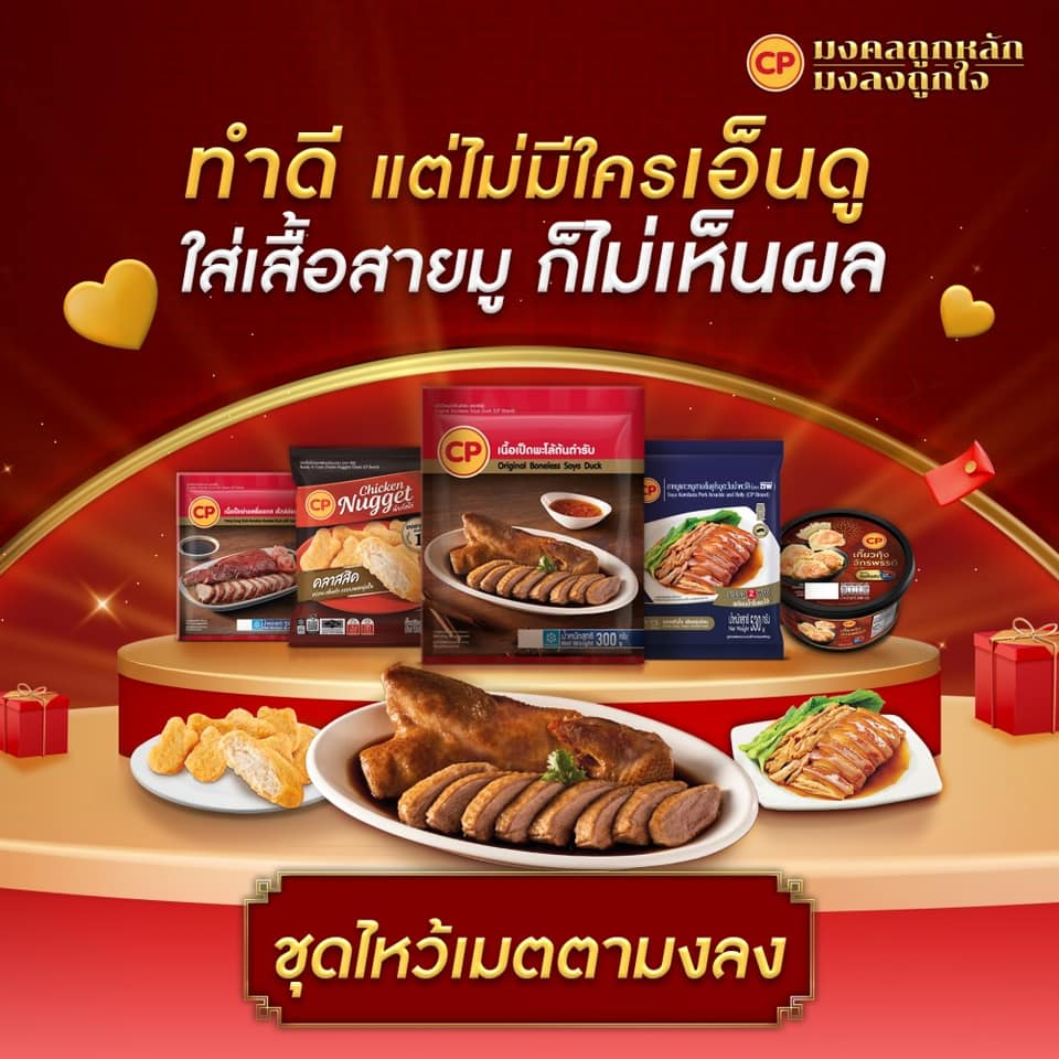 CPF ผนึกกำลัง แม็คโคร และ โลตัส จัดแคมเปญ “CP มงคลถูกหลัก มงลงถูกใจ” ต้อนรับเทศกาลตรุษจีนกระต่ายทอง ด้วยของไหว้คุณภาพดีจากแบรนด์ซีพี เสริมสิริมงคล 3 ด้าน ได้แก่ ชุดงานก้าวหน้า ชุดเรียกทรัพย์ และชุดเมตตามงลง เพื่อแสดงถึงความกตัญญูและเสริมความเฮง พิเศษ! ในปีนี้ CPF จัดทำสินค้ารูปแบบดั้งเดิม (แบบตัว) และของไหว้สะดวกมงคล (แบบชิ้นส่วน) ให้เข้าถึงทุกไลฟ์สไตล์ของผู้บริโภคมากยิ่งขึ้น โดยเฉพาะคนรุ่นใหม่ร่วมสืบทอดขนบธรรมเนียม ได้สะดวกสบาย ง่ายต่อการจัดเตรียม และรับประทาน ด้วยสินค้าคุณภาพที่ยังคงความสด สะอาด ปลอดภัย ในราคาสุดคุ้ม