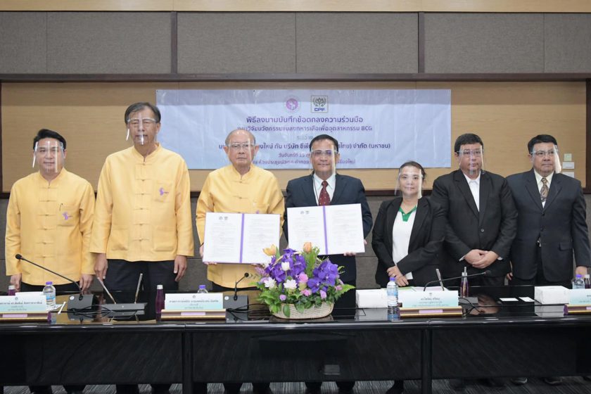 ศ.คลินิก นพ.นิเวศน์ นันทจิต อธิการบดีมหาวิทยาลัยเชียงใหม่ ร่วมกับ ดร.ไพรัตน์ ศรีชนะ รองกรรมการผู้จัดการอาวุโส CPF ลงนามบันทึกข้อตกลงความร่วมมือ (MOU) “งานวิจัยนวัตกรรมแมลงทหารเสือเพื่ออุตสาหกรรม BCG” เพื่อสร้างระบบต้นแบบการเลี้ยงหนอนแมลงทหารเสือแบบ Smart Farm ที่เหมาะสมสำหรับชุมชน เพื่อให้เกษตรกรสามารถนำไปสร้างอาชีพ ด้วยการนำผลิตผลทางการเกษตรเหลือใช้มาสร้างมูลค่า โดยใช้หนอนแมลงทหารเสือที่สามารถเปลี่ยนอินทรียวัตถุให้เป็นโปรตีนและไขมันได้ ช่วยยกระดับความสามารถในการผลิตอย่างยั่งยืนให้กับอุตสาหกรรมเกษตรและอาหาร พร้อมต่อยอดและขยายผลในเชิงพาณิชย์ด้าน Biowaste หรือ Circular Feed สอดรับกับ Model BCG Economy หรือ เศรษฐกิจชีวภาพ เศรษฐกิจหมุนเวียน และเศรษฐกิจสีเขียว (Bio-Circular-Green Economy : BCG) ซึ่งเป็นโมเดลที่ประเทศไทย มช. และ CPF มุ่งมั่นผลักดันให้เกิดความยั่งยืนตามแนวทาง SDGs ณ สำนักงานมหาวิทยาลัยเชียงใหม่