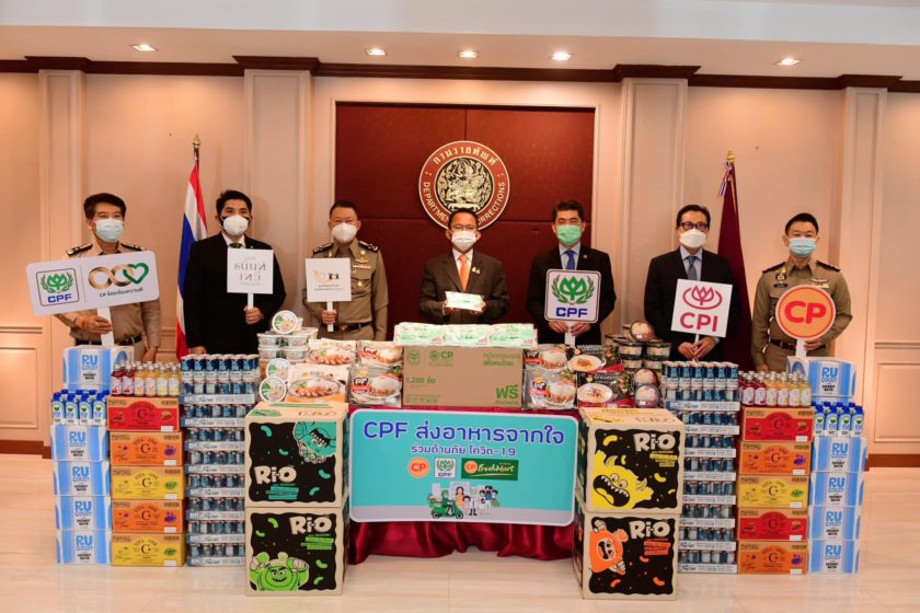 สำหรับผลิตภัณฑ์อาหารคุณภาพปลอดภัยของ CPF ที่ส่งมอบในครั้งนี้ ประกอบด้วย อาหารพร้อมทานหลากหลายเมนู อาทิ ข้าวไก่เทอริยากิ ข้าวเป็ดย่างโฟร์ซี่ซั่น ข้าวกะเพราเนื้อสับ สปาเก็ตตี้กะเพราไก่ สปาเก็ตตี้คาโบนารา เกี๊ยวกุ้ง ข้าวกล้องต้มทรงเครื่อง เป็นต้น รวมถึง หน้ากากอนามัยซีพี และผลิตภัณฑ์เครื่องดื่มวิตามินจาก CPI ด้วย