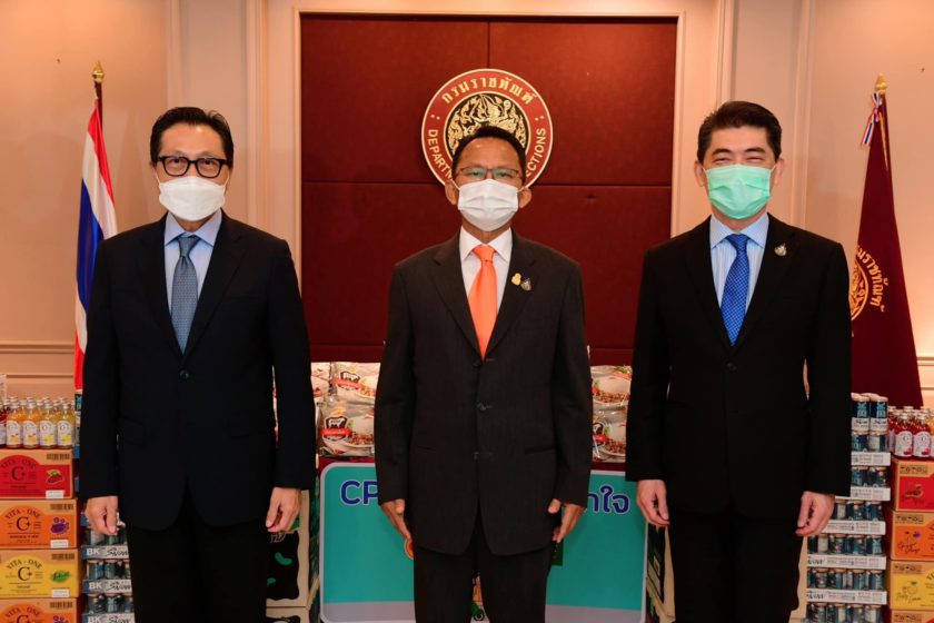คุณสมศักดิ์ เทพสุทิน รมว.ยุติธรรม รับมอบหน้ากากอนามัย CP พร้อมผลิตภัณฑ์อาหารสำเร็จรูป เครื่องดื่มและขนม ภายใต้โครงการ “CPF ส่งอาหารจากใจ ร่วมต้านภัยโควิด-19” จาก CEO คุณประสิทธิ์ บุญดวงประเสริฐ และ คุณสุเมธ เหล่าโมราพร ประธานคณะผู้บริหาร ธุรกิจข้าวและอาหาร ซีพี อินเตอร์เทรด หรือ CPI ตลอดจนความช่วยเหลือจากมูลนิธิพุทธรักษา และมูลนิธิธนินท์ เทวี เจียรวนนท์ เพื่อแบ่งเบาภาระและสนับสนุนการปฏิบัติหน้าที่ของทีมแพทย์ พยาบาลและเจ้าหน้าที่ในทัณฑสถาน รพ.ราชทัณฑ์ โดยมี คุณอายุตม์ สินธพพันธุ์ อธิบดีกรมราชทัณฑ์ ร่วมด้วย ณ กรมราชทัณฑ์