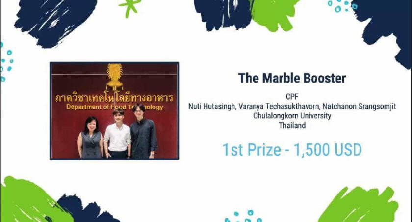 สำหรับทีม Food Tech Chula ทั้ง 3 คน ประสานความเชี่ยวชาญที่แตกต่างกันได้อย่างลงตัว และนำเสนอแนวคิดนวัตกรรมเนื้อเทียม The Marbel Booster ได้อย่างสร้างสรรค์ สามารถนำคำแนะนำที่ได้รับไปปรับปรุงและต่อยอดได้อย่างสมเหตุผลและรวดเร็ว นำคำแนะนำไปประยุกต์ใช้เพื่อการผลิตผลงานได้จริงในอนาคต
