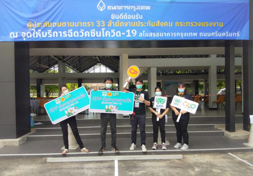 CPF เดินหน้าส่งอาหารพร้อมทาน ภายใต้โครงการ “CPF ส่งอาหารจากใจ ร่วมต้านภัยโควิด-19” เพื่อสนับสนุนการปฏิบัติงานของแพทย์ พยาบาล และเจ้าหน้าที่ประกันสังคม ในพื้นที่ฉีดวัคซีนสำหรับผู้ประกันตน มาตรา 33 รวม 46 จุดทั่วกรุงเทพฯ ร่วมสร้างภูมิคุ้มกันหมู่ให้ประเทศไทย อาทิ สำนักงานประกันสังคม (สนง.ใหญ่) ม.เกษตรศาสตร์ ม.ธรรมศาสตร์ ท่าพระจันทร์ ม.ธุรกิจบัณฑิตย์ ม.เกษมบัณฑิต ศูนย์เยาวชน ไทย-ญี่ปุ่น ดินแดง ธนาคารกสิกรไทย (สนง.ใหญ่) สโมสรธนาคารกรุงเทพ โลตัสนวมินทร์ MBK Center เซ็นทรัลเวิล์ด-พระรามเก้า-บางนา ซีคอนสแควร์-บางแค เดอะมอลล์รามคำแหง แฟชั่นไอส์แลนด์ The Market Bangkok สิงห์คอมเพล็กซ์ เป็นต้น