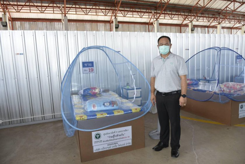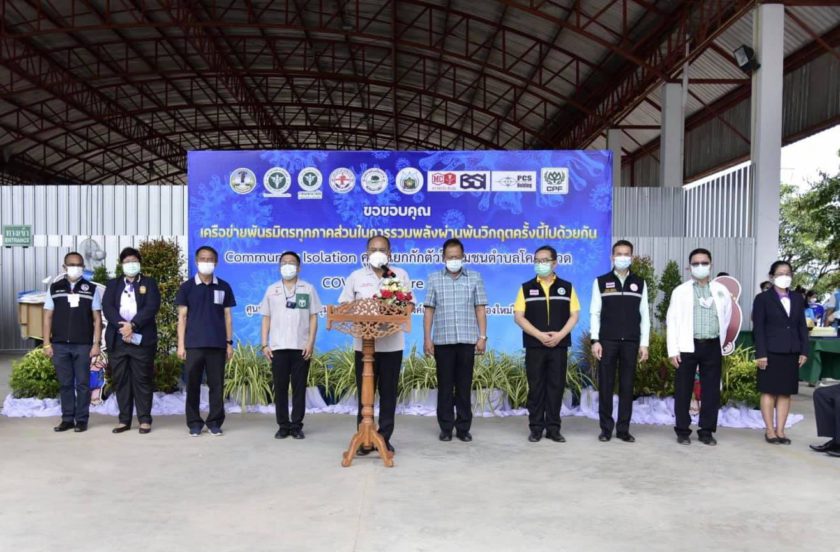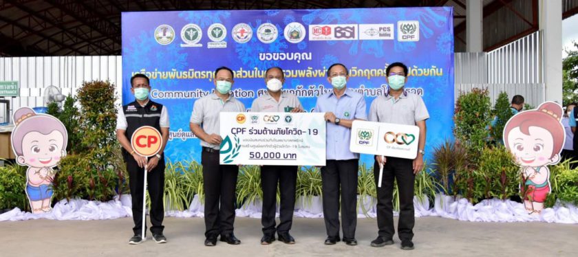 คุณธราพงษ์ ธนสำราญสุข ผู้ช่วยกรรมการผู้จัดการ กิจการขายอาหารสัตว์ ภาคอีสาน (ล่าง) และคุณรุ่ง จันทร์นาค ผู้ช่วยกรรมการผู้จัดการ CPF อาหารสัตว์บกโคกกรวด เป็นผู้แทนบริษัทฯ มอบเงิน จำนวน 50,000 บาท เพื่อสนับสนุนการสร้างศูนย์แยกกักตัวผู้ป่วยโควิด (Community Isolation) จำนวน 100 เตียงในชุมชน ต.โคกกรวด โดยมี คุณจิรศักดิ์ วิจักขณาลัญฉ์ ผู้อำนวยการโรงพยาบาลเทพรัตน์ รับมอบ ณ อาคารอเนกประสงค์เทศบาลเมืองใหม่โคกกรวด จ.นครราชสีมา