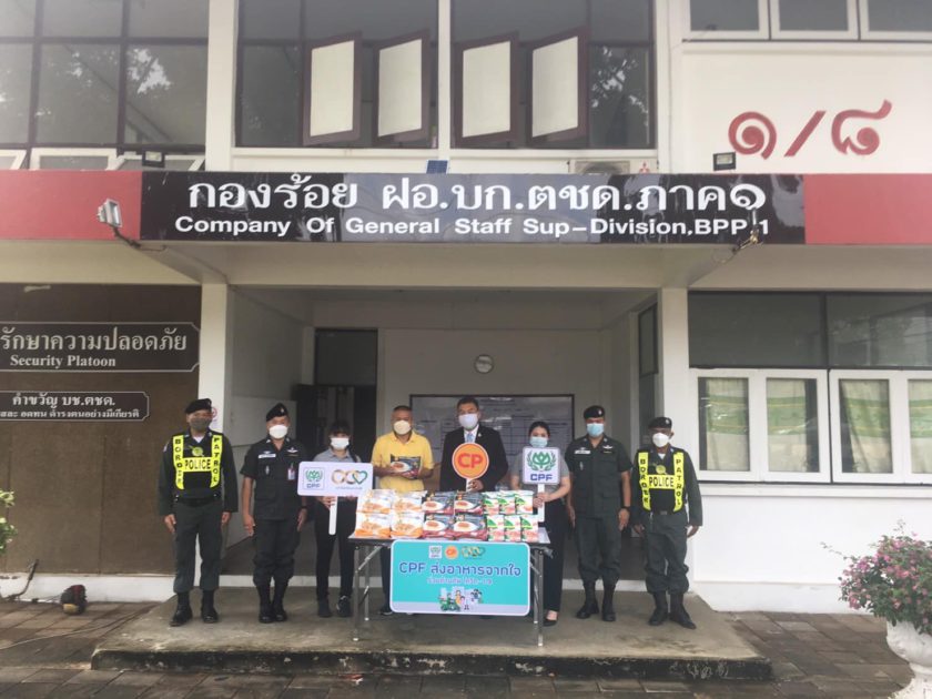 พล.ต.ต.กัญชล อินทราราม ผู้บังคับหารตำรวจตระเวนชายแดน ภาค 1 รับมอบอาหารสำเร็จรูปพร้อมทานหลากหลายเมนู ได้แก่ สปาเก็ตตี้ไก่สับ ข้าวกะเพราไก่สับ และราเมนโฮลวีตผัดขี้เมาอกไก่ จาก CPF ในโครงการ “CPF ส่งอาหารจากใจ ร่วมต้านภัยโควิด-19” ตามนโยบายเครือซีพี เพื่อเป็นกำลังใจและสนับสนุนการปฏิบติงานของเจ้าหน้าที่ตำรวจตระเวนชายแดน กองบังคับการตำรวจตระเวนชายแดนภาค 1 ต.คลองห้า อ.คลองหลวง จ.ปทุมธานี ที่เสียสละปฏิบัติหน้าที่ บำบัดทุกข์บำรุงสุขเพื่อประชาชนในช่วงสถานการณ์โควิด โดยมี คุณศรกฤษณ์ วัตตศิริ รองกรรมการผู้จัดการอาวุโส ด้านทรัพยากรบุคคล ธุรกิจสัตว์บก และชาว CPF จิตอาสา ร่วมมอบ
