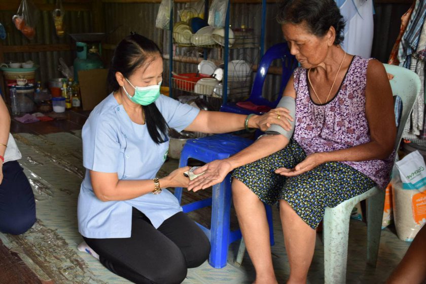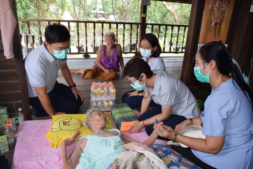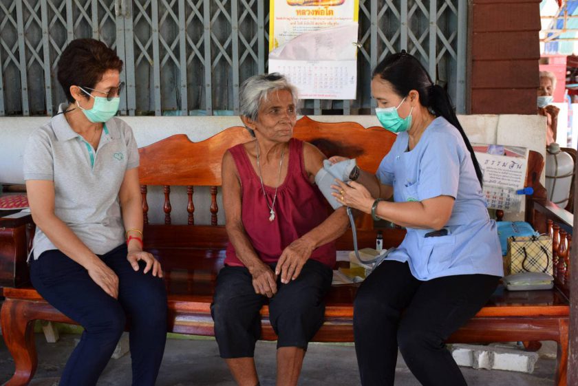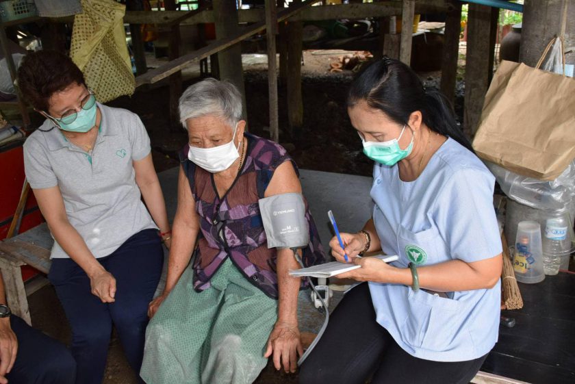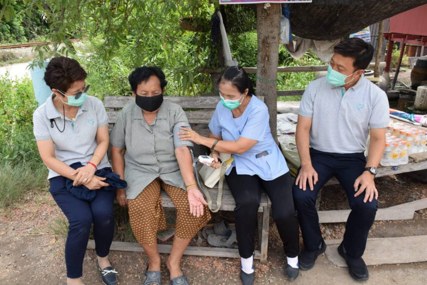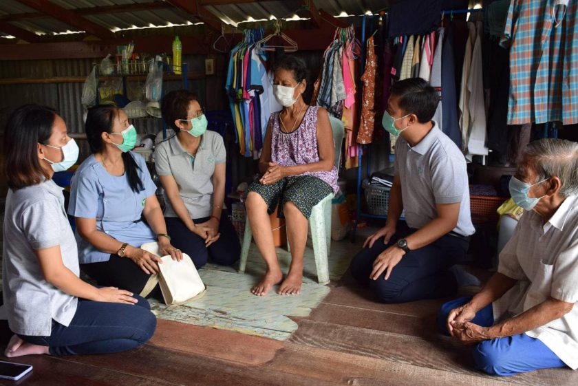 คุณพรทิพย์ เอี่ยมชัย ผู้จัดการทั่วไปสำนักธุรการ และคณะกรรมการมวลชนสัมพันธ์ CPF โรงงานผลิตอาหารสัตว์น้ำมหาชัย พร้อมเจ้าหน้าที่ รพ.สต.บ้านบางโทรัด เดินหน้าโครงการ “ซีพีเอฟ คืนสุข ผู้สูงวัย” อย่างต่อเนื่อง ออกเยี่ยมและตรวจสุขภาพในเบื้องต้น พร้อมทั้งมอบน้ำดื่มซีพีและเงินช่วยเหลือให้แก่ผู้สูงวัย รวม 6 ท่าน ณ ชุมชนบางโทรัด ต.บางโทรัด อ.เมืองสมุทรสาคร จ.สมุทรสาคร