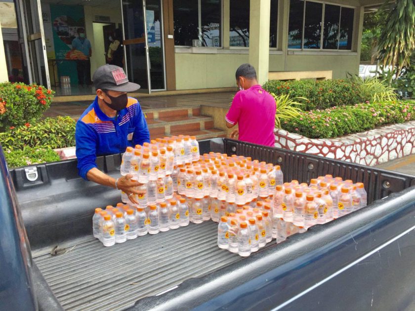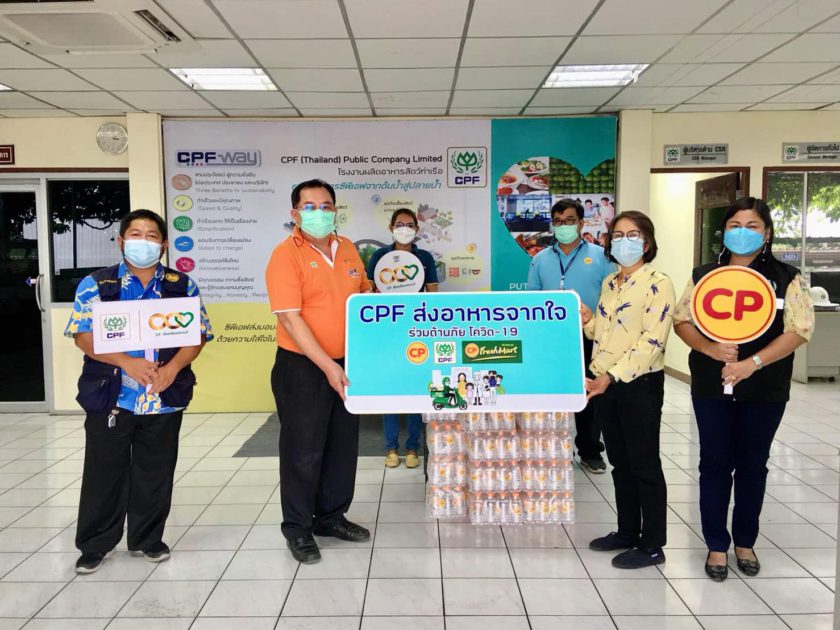 คุณบำรุง ม่วงพิจิตร นายกเทศมนตรีตำบลท่าหลวง รับมอบผลิตภัณฑ์จาก CPF ได้แก่ น้ำดื่ม 600 ขวด ไข่ไก่ 450 ฟอง และข้าวตราฉัตร ในโครงการ “CPF ส่งอาหารจากใจ ร่วมต้านภัยโควิด-19” ตามนโยบายเครือเจริญโภคภัณฑ์ เพื่อบรรเทาความเดือดร้อนและลดภาระค่าใช้จ่ายให้แก่ประชาชนในระหว่างการกักตัว 14 วัน ในพื้นที่เขตเทศบาลตำบลท่าหลวง อ.ท่าเรือ จ.พระนครศรีอยุธยา โดยมี คุณสกุลยศ สามเสน รองกรรมการผู้จัดการอาวุโส CPF โรงงานผลิตอาหารสัตว์บกท่าเรือ เป็นผู้แทนบริษัทฯ มอบ