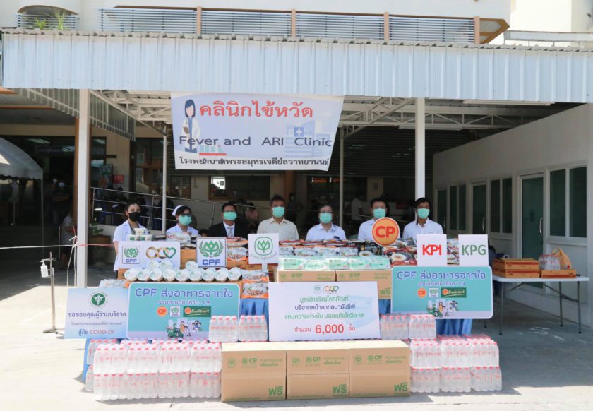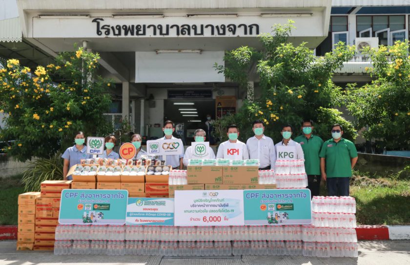 นอกจากนี้ ยังสนับสนุนวัตถุดิบจากซีพีเอฟ ได้แก่ เนื้อหมูสด เนื้อไก่สด ไข่ไก่ น้ำดื่ม และข้าวสาร สำหรับปรุงเป็นอาหารพร้อมทาน ให้กับโรงพยาบาลหลัก โรงพยาบาลสนาม รวมถึงผู้ยากไร้ในชุมชนคลองเตย ชุมชนนางเลิ้ง และหน่วยงานต่างๆ ทั่วประเทศ รวม 97 แห่ง เพื่อร่วมฝ่าวิกฤตโควิดไปด้วยกัน