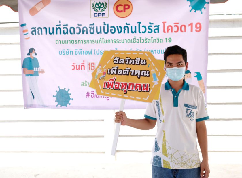 CPF จัดสรรวัคซีนทางเลือก “ซิโนฟาร์ม” จากราชวิทยาลัยจุฬาภรณ์ โดยเร่งฉีดวัคซีนสร้างภูมิคุ้มกันหมู่ให้พนักงานสายการผลิต โรงงานชำแหละตัดแต่งและแปรรูปสุกรกาญจนบุรี ซึ่งมีหน้าที่ผลิตอาหารปลอดภัยสู่ผู้บริโภค ตามนโยบายของท่านประธานอาวุโสธนินท์ เจียรวนนท์ ที่ต้องการช่วยแบ่งเบาภาระภาครัฐในสถานการณ์โควิด และเป็นมาตรการดูแลบุคลากรของเครือฯ