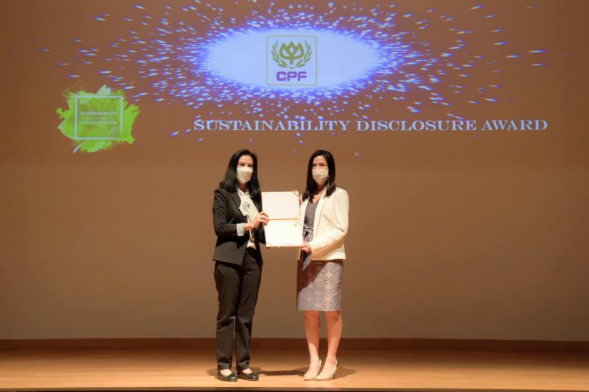 CPF รับรางวัลเกียรติคุณจากการเปิดเผยข้อมูลความยั่งยืนปี 2564 (Sustainability Disclosure Award 2021 : SDA 2021) จากสถาบันไทยพัฒน์ ในงาน “มอบรางวัลการเปิดเผยข้อมูลความยั่งยืน ประจำปี 2564” โดย คุณจีระณี จันทร์รุ่งอุทัย ผู้ช่วยกรรมการผู้จัดการ ด้านพัฒนาความยั่งยืนองค์กร CPF เป็นผู้แทนบริษัทฯ รับรางวัล จาก คุณวีรญา ปรียาพันธ์ ผู้อำนวยการประชาคมการเปิดเผยข้อมูลความยั่งยืน สถาบันไทยพัฒน์ ณ ห้องออดิทอเรียม ชั้น 5 หอศิลป์กรุงเทพฯ