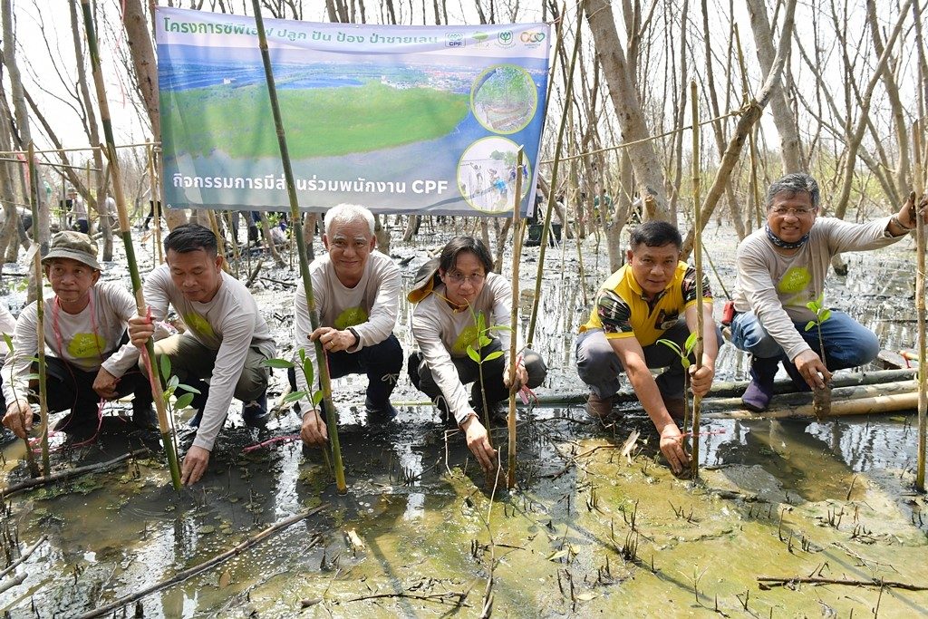 ซีพีเอฟ มุ่งมั่นดำเนินธุรกิจด้วยความรับผิดชอบต่อสังคมและสิ่งแวดล้อม ภายใต้กลยุทธ์ 3 เสาหลักสู่ความยั่งยืน “อาหารมั่นคง สังคมพึ่งตน และดิน น้ำ ป่าคงอยู่” เพื่อสร้างความมั่นคงทางอาหาร (Food Security) ทั้งในภาวะปกติและในสถานการณ์วิกฤต โดยเฉพาะอย่างยิ่ง ภายใต้ความท้าทายจากผลกระทบของการเปลี่ยนแปลงสภาพภูมิอากาศ (Climate Change) บริษัทฯตระหนักถึงการมีส่วนร่วมเพิ่มพื้นที่ป่าต้นน้ำ ป่าชายเลน และการปลูกต้นไม้ในสถานประกอบการ ซึ่งในการดำเนินโครงการ “ซีพีเอฟ ปลูก ปัน ป้อง ป่าชายเลน” ตั้งแต่ปี 2557- 2561 อนุรักษ์และฟื้นฟูป่าชายเลน รวม 2,400 ไร่  ปัจจุบันเข้าสู่ระยะที่สองของโครงการ (ปี 2562-2566) มีเป้าหมายอนุรักษ์ ฟื้นฟูและปลูกป่าใหม่ อีก 2,800 ไร่ ในพื้นที่ยุทธศาสตร์ จ.สมุทรสาคร ระยอง และตราด