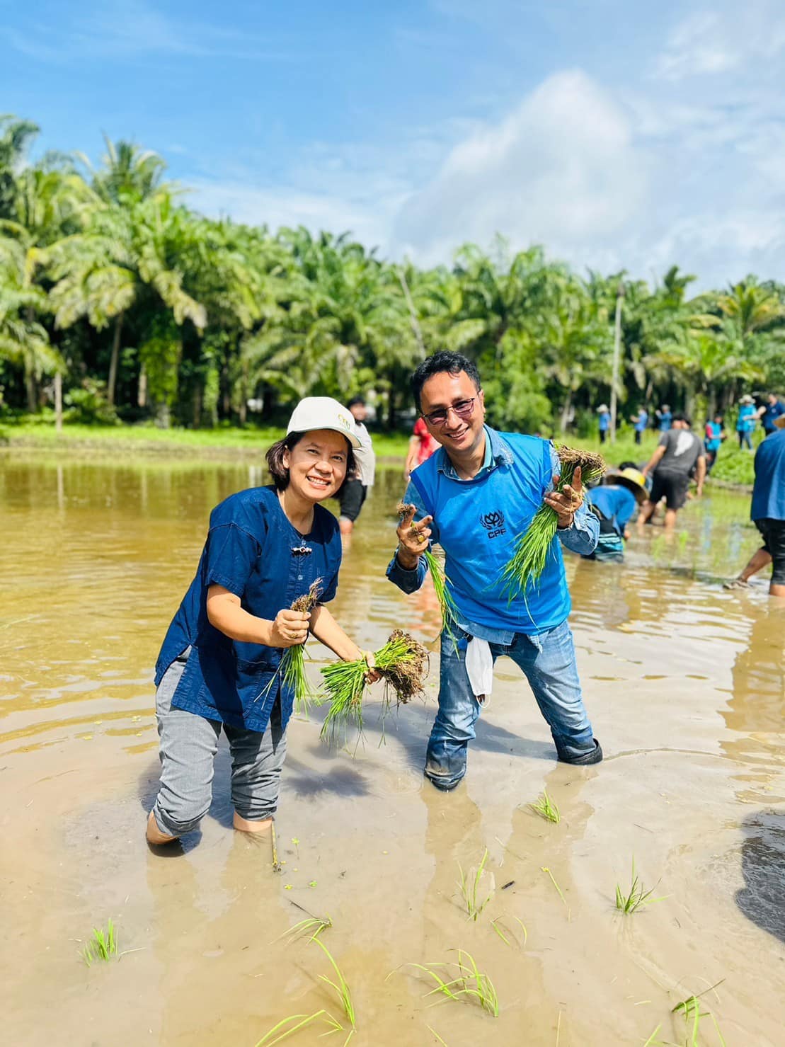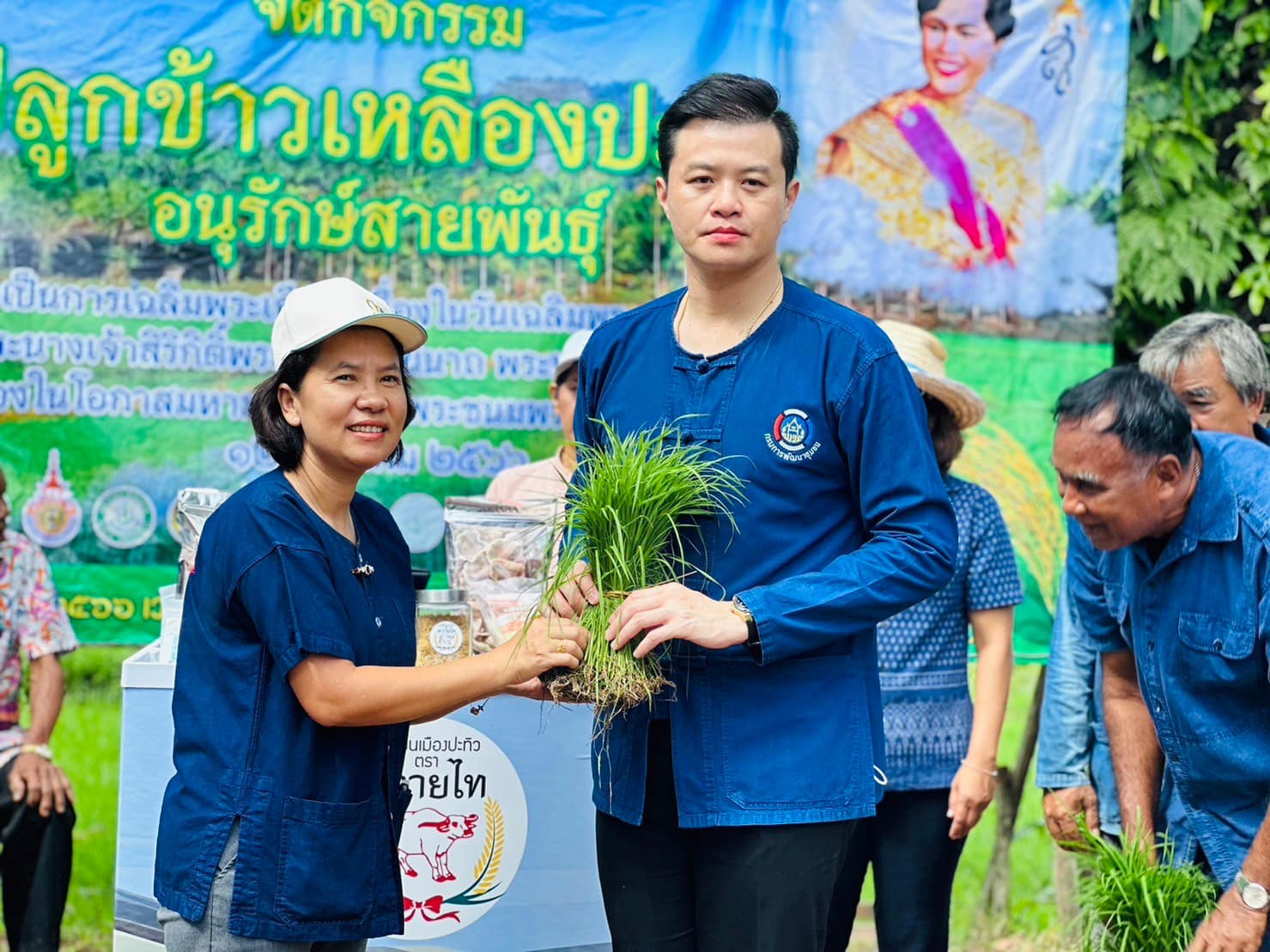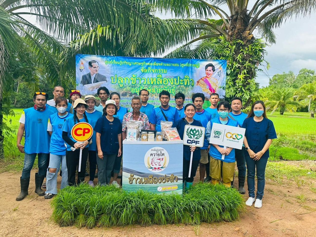คุณอาลัยลา ภักดี ผู้จัดการทั่วไป นำพนักงาน CPF จิตอาสา ศููนย์ปรับปรุงพันธุกรรมกุ้งปะทิว เป็นตัวแทนบริษัทฯ มอบเงินสนับสนุน “โครงการปลูกข้าวเหลืองปะทิว อนุรักษ์สายพันธุ์ข้าวพื้นถิ่น สานต่อมรดกทางวัฒนธรรมฐานข้าว ตามแนวพระราชดำริเศรษฐกิจพอเพียง” พร้อมผนึกกำลัง ส่วนราชการ สถานศึกษา และชาวชุมชน ร่วมกิจกรรม ณ ศูนย์เรียนรู้ปรัชญาเศรษฐกิจพอเพียงตำบลบางสน อ.ปะทิว จ.ชุมพร เพื่อเฉลิมพระเกียรติสมเด็จพระนางเจ้าสิริกิติ์พระบรมราชินีนาถ พระบรมราชชนนีพันปีหลวง เนื่องในโอกาสมหามงคลเฉลิมพระชนมพรรษา 81 พรรษา โดยมี คุณเจริญโชค พรหมชุติมา นายอำเภอปะทิว เป็นประธานเปิดงาน