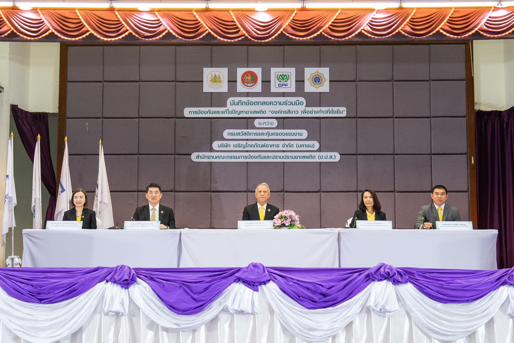 รมว.แรงงาน กล่าวว่า ปัญหายาเสพติด เป็นปัญหาระดับชาติที่รัฐบาลมีนโยบายดำเนินการจัดการอย่างเร่งด่วน เพื่อสนับสนุนให้ประเทศพัฒนาอย่างเข้มแข็งและมั่นคง กระทรวงฯ เน้นสร้างการมีส่วนร่วมของทุกภาคส่วนทั้งภาครัฐและเอกชน บูรณาการแนวทางป้องกันและแก้ไขปัญหายาเสพติดในสถานประกอบกิจการอย่างเป็นระบบ ตามหลักเกณฑ์โรงงานสีขาว สำหรับการลงนาม MOU ในวันนี้ เป็นหลักประกันว่าพนักงานของ ซีพีเอฟ ทุกคน ได้ทำงานในสภาพแวดล้อมการทำงานที่ปลอดภัย มีระบบและกลไกในการแก้ไขและป้องกันปัญหายาเสพติดแบบครบวงจร เป็นตัวอย่างที่ดีขององค์กรที่มีแนวปฏิบัติด้านแรงงานที่ดี ดูแลพนักงานทุกคนด้วยความเสมอภาค ไม่เลือกปฏิบัติตามหลักสิทธิมนุษยชน เพื่อให้พนักงานที่ทำงานในไทยมีสุขภาพและคุณภาพชีวิตที่ดี เป็นพลังสำคัญในการขับเคลื่อนเศรษฐกิจของประเทศเติบโตอย่างยั่งยืน