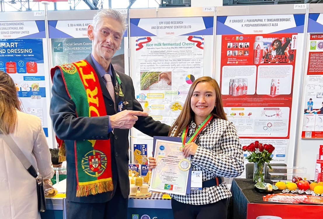 ซีพีเอฟ รับ 3 รางวัลด้านนวัตกรรมอาหาร ระดับประเทศและระดับโลก ในงานนิทรรศการด้านนวัตกรรมระดับโลก “The 49th International Exhibition of Inventions Geneva” ณ กรุงเจนีวา สวิสเซอร์แลนด์ จากผลงานนวัตกรรม “ชีสวีแกน” ที่ทำจากปลายข้าวหัก (Just-Cheese) ไขมันต่ำ มีคุณค่าทางโภชนาการสูง รสชาติอร่อยเหมือนชีสที่ทำจากนม ตอบโจทย์คนรุ่นใหม่ที่ชื่นชอบชีส ทานมังสวิรัติ และเป็นทางเลือกสำหรับผู้ที่แพ้นมวัว