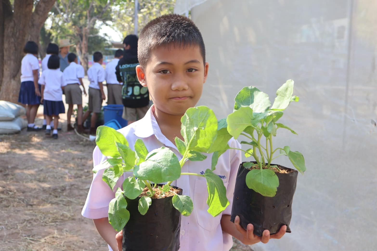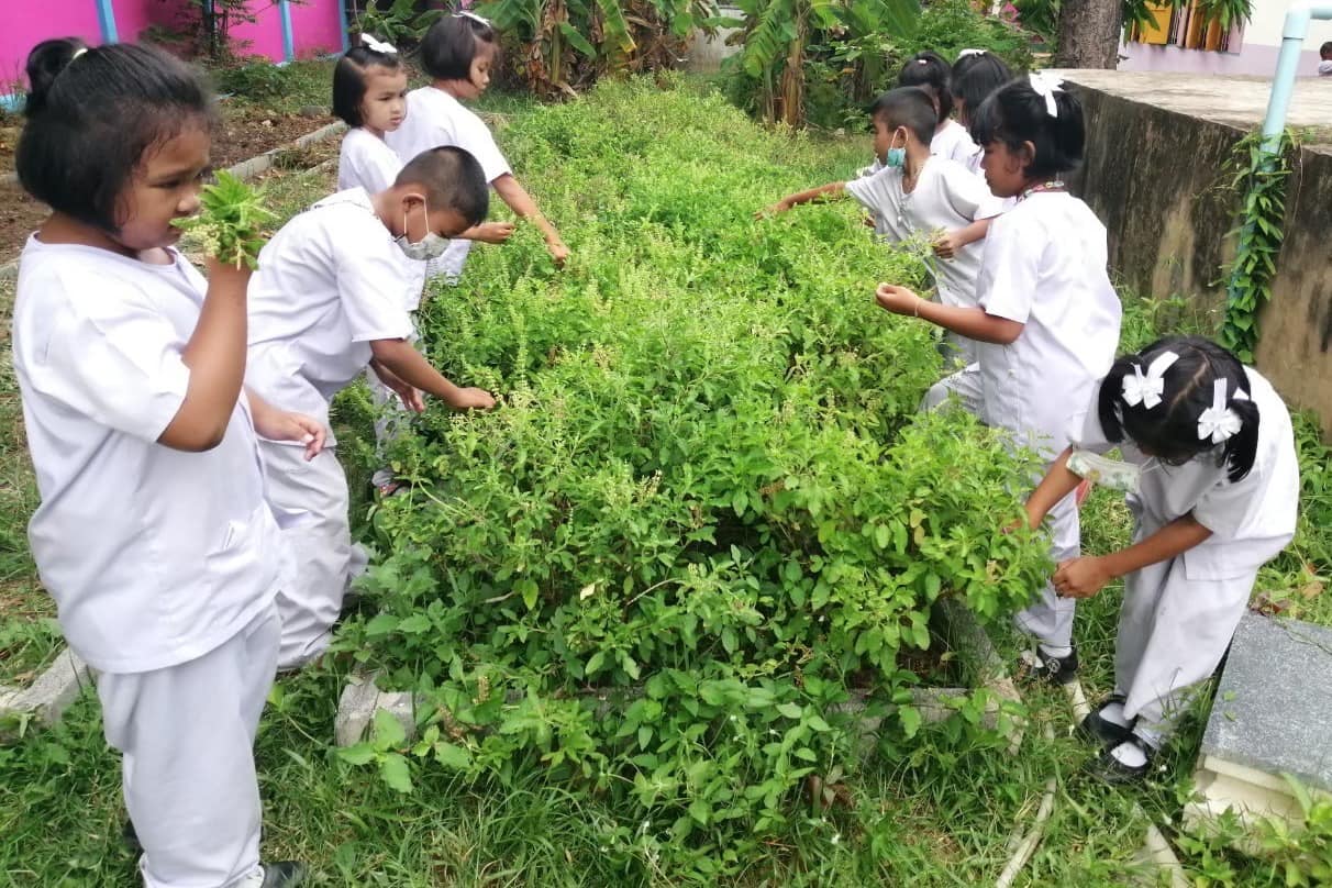 ดช.ปวรปรัชญ์ เลิกสันเทียะ นักเรียน ชั้น ป.1 เลือกปลูกผักกะเพราปลอดสาร เล่าว่า ตนมีหน้าที่ดูแลแปลงปลูกกะเพรา ตั้งแต่พรวนดิน ถอนวัชพืช รดน้ำ และตัดไปขายให้กับโครงการฯ และผู้ปกครอง และช่วยครูทำบัญชีรายรับและรายจ่าย