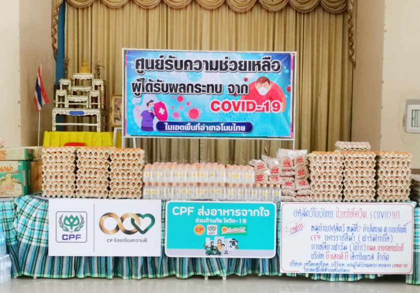 คุณสมพงษ์ หอมสนิท นายอำเภอโนนไทย พร้อมด้วย คุณพศวีร์ สมใจ ปศุสัตว์ จ.นครราชสีมา, คุณปรีชา อัญชำนาญ ปศุสัตว์ อ.โนนไทย, นายกเหล่ากาชาด หัวหน้าส่วนราชการ และตัวแทนชาวบ้าน อ.โนนไทย รับมอบผลิตภัณฑ์อาหารคุณภาพ สะอาด ปลอดภัย จาก CPF ได้แก่ เนื้อหมู 100 กิโลกรัม, ไข่ไก่ 2,100 ฟอง, ลูกชิ้นมาสเตอร์เชฟ 100 แพ็ค, ตับหมู 10 แพ็ค และน้ำดื่ม 300 ขวด ในโครงการ “CPF ส่งอาหารจากใจ ร่วมต้านภัยโควิด-19” ตามนโยบายเครือซีพี เพื่อบรรเทาความเดือดร้อนจากสถานการณ์โควิดให้แก่ชาวบ้านวัง ม.3 ต.บ้านวัง อ.โนนไทย จ.นครราชสีมา จำนวน 127 ครัวเรือน รวม 462 คน โดยมี คุณชาญชัย แจ่มแจ้ง ผู้ช่วยกรรมการผู้จัดการ CPF สายธุรกิจสุกรอีสานตอนล่าง เป็นผู้แทนบริษัทฯ มอบ