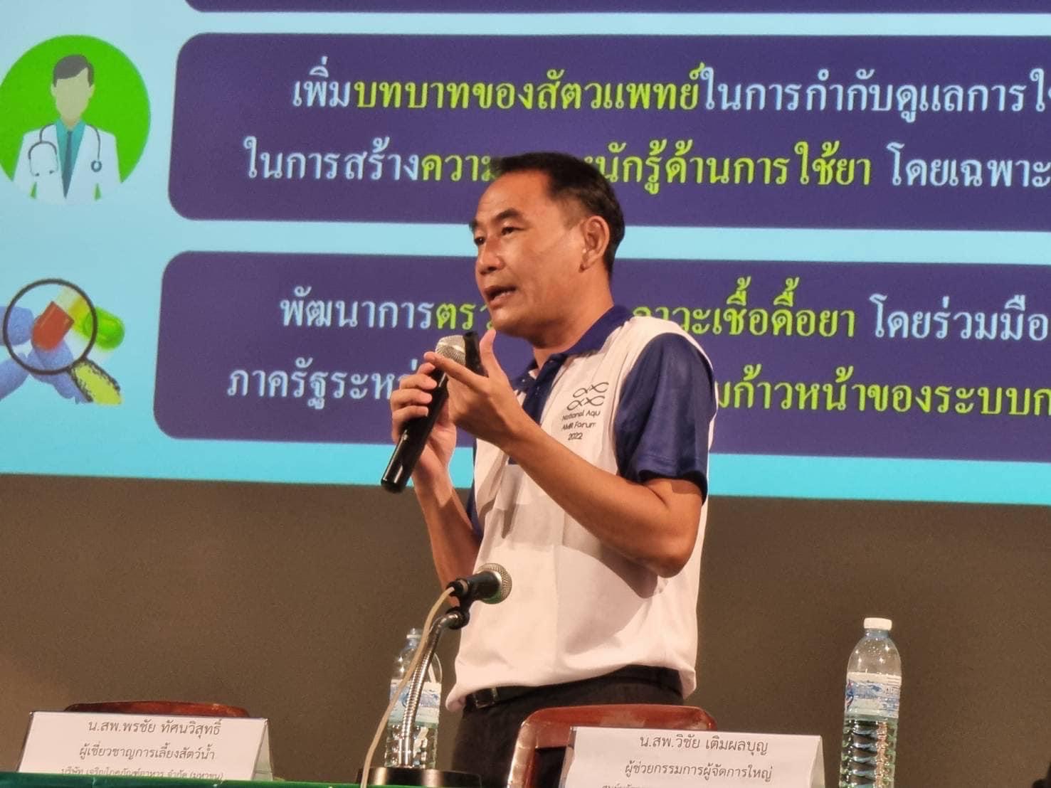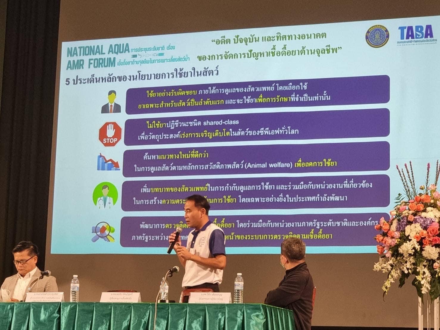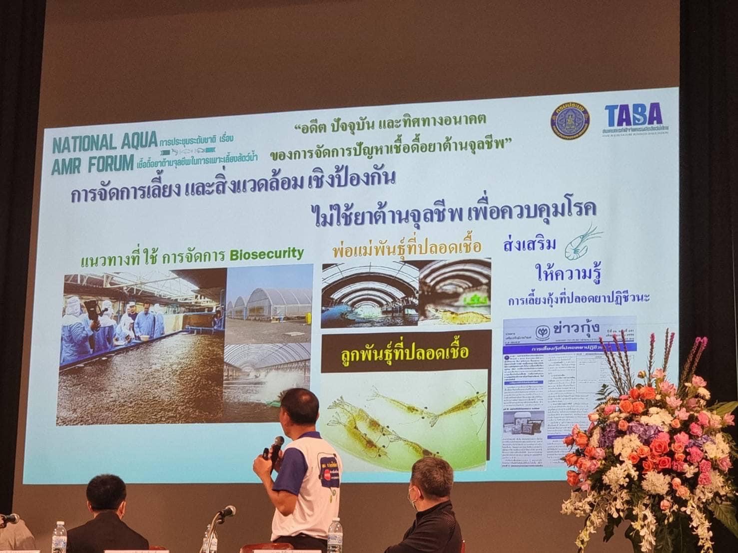 CPF ร่วมแบ่งปันความรู้และประสบการณ์ในการเพาะเลี้ยงสัตว์น้ำที่ใช้ยาต้านจุลชีพอย่างรับผิดชอบ ในการเสวนาเรื่อง “อดีต ปัจจุบัน และทิศทางอนาคตของการจัดการปัญหาเชื้อดื้อยาต้านจุลชีพ” ในงานประชุมประชุมระดับชาติ เรื่อง เชื้อดื้อยาต้านจุลชีพในการเพาะเลี้ยงสัตว์น้ำ (National Aqua AMR Forum) จัดโดย กองวิจัยและพัฒนาสุขภาพสัตว์น้ำ กรมประมง ณ ห้องประชุมธีระ สูตะบุตร อาคารสารนิเทศ 50 ปี มหาวิทยาลัยเกษตรศาสตร์ บางเขน