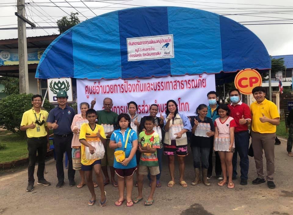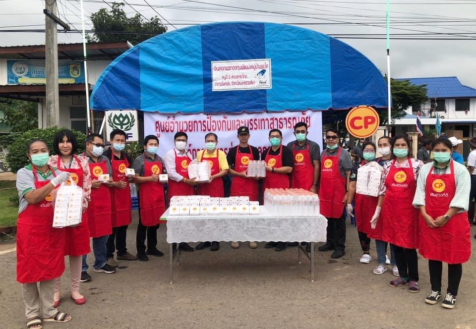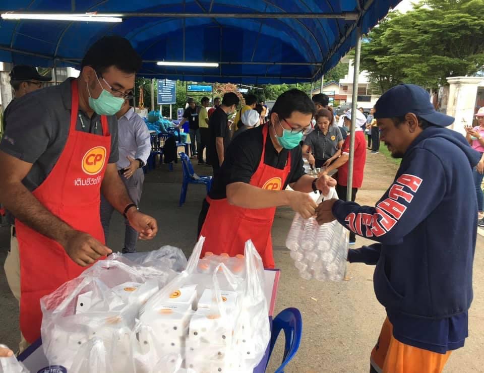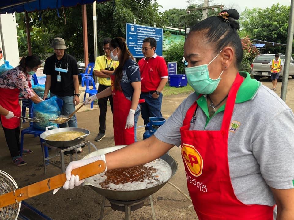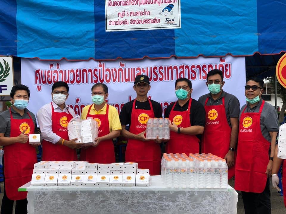 คุณปิโยรส ธรรมจารึก ผู้ช่วยกรรมการผู้จัดการ นำพนักงาน CPF โรงงานแปรรูปเนื้อไก่ นครราชสีมา เป็นตัวแทนบริษัทฯ ร่วมสนับสนุนผลิตภัณฑ์อาหารคุณภาพ สด สะอาด ปลอดภัย ได้แก่ ไก่สดซีพี 300 กิโลกรัม และน้ำดื่ม 350 แพ็ค ให้แก่ คุณธงชัย โอฬารพัฒนะชัย นายอำเภอโชคชัย พร้อมด้วย จ.ส.อ.บุญเยี่ยม หมั่นกระโทก นายก อบต.กระโทก ณ ที่ทำการ อบต.กระโทก เพื่อนำไปจัดทำอาหารปรุงสุกพร้อมทาน บรรเทาความเดือดร้อนและให้กำลังใจผู้ประสบอุทกภัยชาว อ.โชคชัย จ.นครราชสีมา ได้ก้าวผ่านวิกฤตไปด้วยกัน