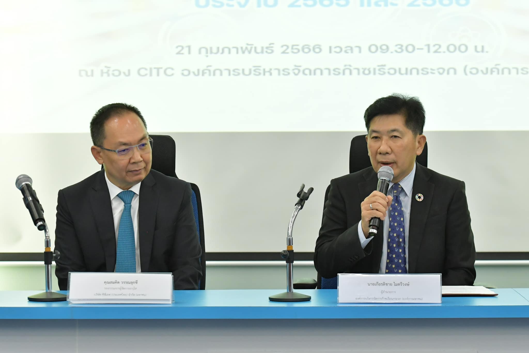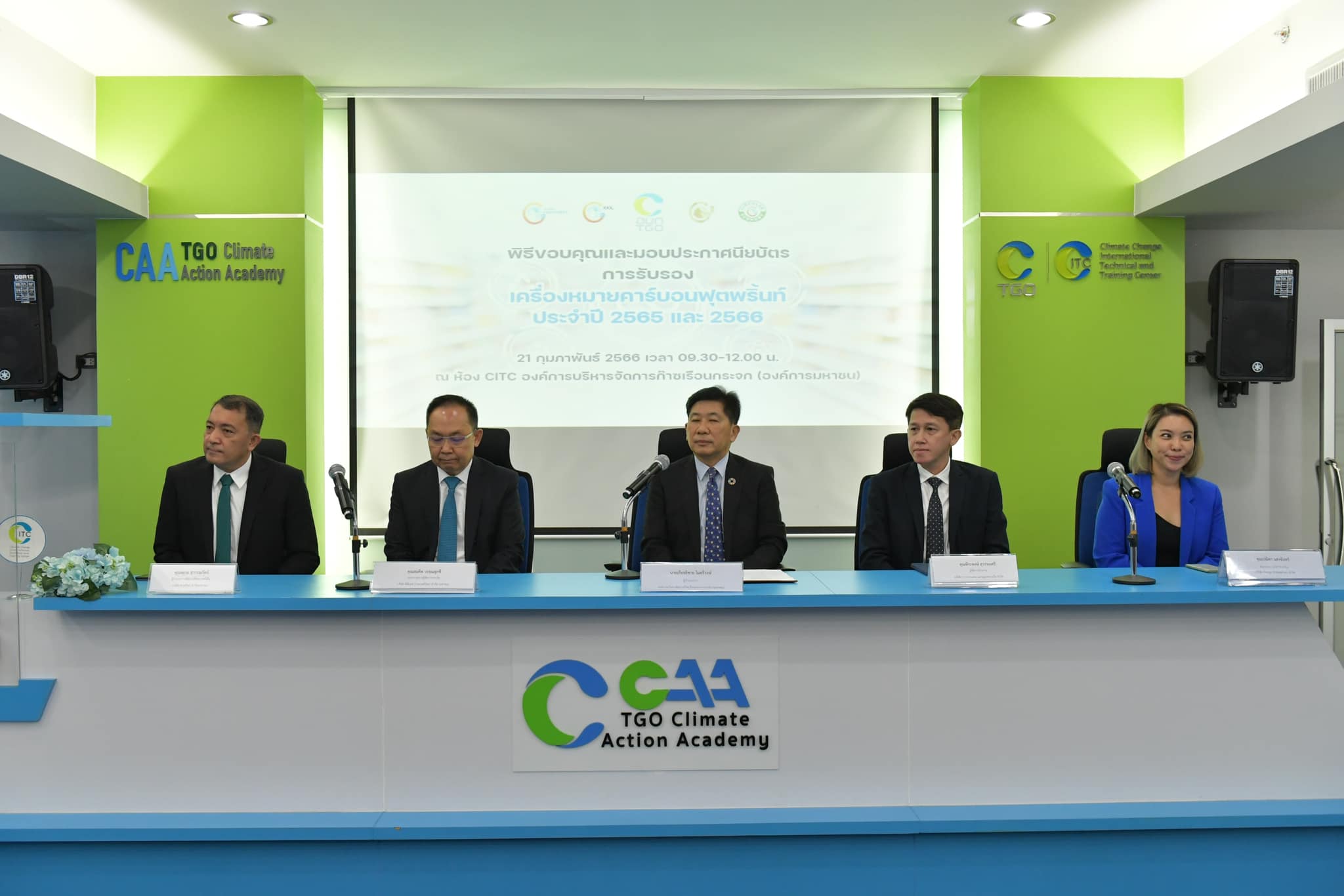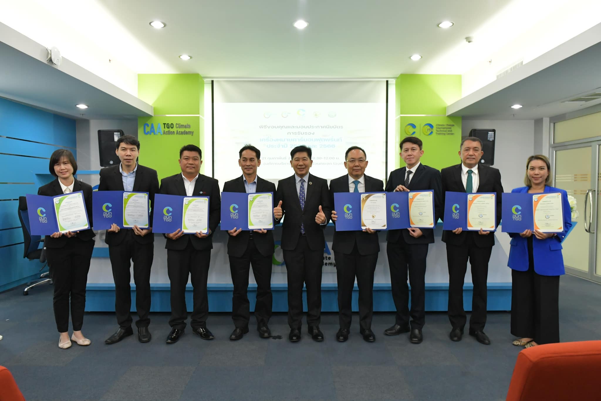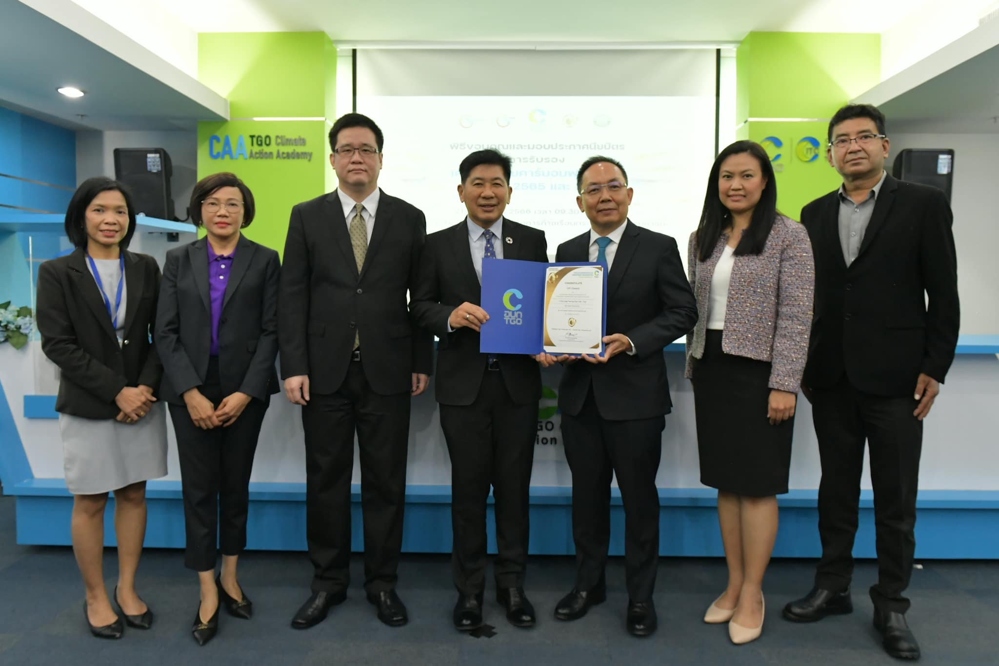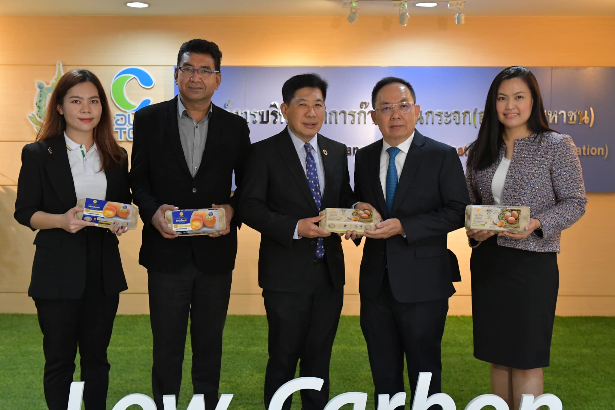 คุณสมคิด วรรณลุกขี ผู้อำนวยการใหญ่ ธุรกิจไก่ไข่ CPF ร่วมพิธีขอบคุณและรับมอบประกาศนียบัตรการรับรองเครื่องหมายคาร์บอร์ฟุตพริ้นท์ (Carbon Footprint of Product) และเครื่องหมายลดคาร์บอนฟุตพริ้นท์ หรือ “ฉลากลดโลกร้อน” ของผลิตภัณฑ์ไข่ไก่สด Cage Free และไข่ไก่สดปลอดสารแบรนด์ CP ในขนาดบรรจุต่างๆ รวม 23 รายการ จาก คุณเกียรติชาย ไมตรีวงษ์ ผู้อำนวยการ องค์การบริหารจัดการก๊าซเรือนกระจก (องค์การมหาชน) หรือ อบก. นับเป็น “ไข่ไก่สด” ไข่ Cage Free รายแรกของไทยที่ได้รับขึ้นทะเบียนรับรองเป็นสินค้าช่วยลดโลกร้อน หนุนคนไทยได้บริโภคไข่ไก่ที่เป็นมิตรต่อสิ่งแวดล้อม และเป็นตัวอย่างที่ดีในการบริหารจัดการและลดการปล่อยก๊าซเรือนกระจกตลอดห่วงโซ่คุณค่า ณ อาคารรัฐประศาสนภักดี ศูนย์ราชการเฉลิมพระเกียรติฯ ถ.แจ้งวัฒนะ