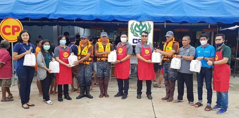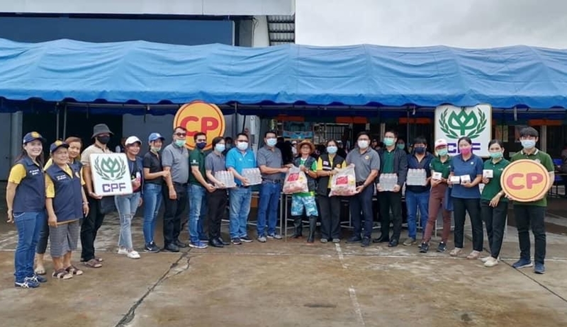 โดยมี คุณสาคร ทวรรณกุล รองกรรมการผู้จัดการ สำนักงานไก่กระทง พร้อมด้วย คุณจิตตุรงค์ พงศ์ประยูร ผู้จัดการสำนักธุรการ โรงงานแปรรูปเนื้อไก่ นำพนักงาน CPF นำน้ำ อาหารช่วยชาวปักธงชัย จ.นครราชสีมา โดย คุณพิชาญ ตราผักแว่น ปลัดอำเภอศูนย์ดำรงธรรม ผู้แทนนายอำเภอปักธงชัย และ คุณกฤษณธร เลิศสำโรง สำนักงานป้องกันจังหวัดนครราชสีมา รับมอบผลิตภัณฑ์อาหารคุณภาพ สด สะอาด ปลอดภัย จาก CPF