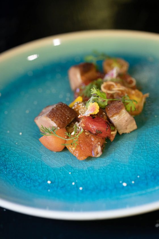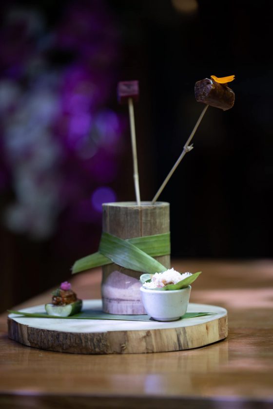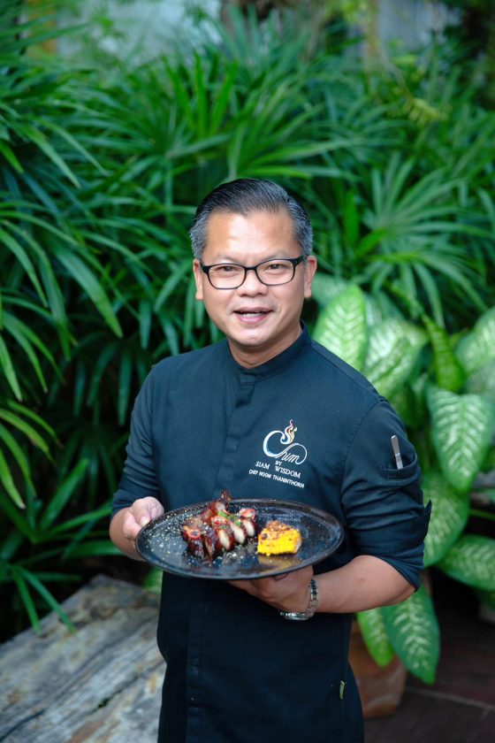 ด้าน เชฟหนุ่ม-ธนินทร จันทรวรรณ เปิดเผยว่า ได้แรงบันดาลใจในการสร้างสรรค์เมนูอาหารในงานนี้จากแนวคิด “เปิดประตูสู่อีสาน” โดยเลือกวัตถุดิบท้องถิ่นยอดนิยมของภาคอีสาน เช่น ปลาร้า หม่ำเนื้อ ผสมผสานกับวัตถุดิบหลักคุณภาพพรีเมียมจาก CPF ทั้งไก่เบญจา หมูชีวา และเป็ด หลอมรวมเข้ากับกลิ่นอายความเป็นอีสานได้อย่างลงตัว อาทิ ไก่เบญจากับหัวปลีเผา สลัดมะเขือเทศย่างกับเป็ดรมควัน และซี่โครงหมูหมักข้าวหมากย่าง แจงลอนปลากราย น้ำพริกพริกไทยสด และอาหารสะท้อนเสน่ห์อีสาน ได้แก่ แกงปลาคังย่างปลาไหล หม่ำเนื้อแตงกวาดอง แจ่วปลาร้าบอง ตำบักส้ม ต้มโฮกฮือ ทานพร้อม ข้าวหุงน้ำมะพร้าวเผา สร้างความประทับใจแก่แขกทุกท่านเป็นอย่างมาก