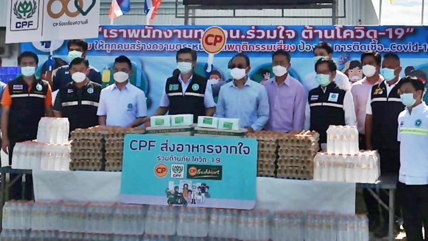 นพ.ทวีศิลป์ วิษณุโยธิน ผู้ตรวจราชการกระทรวงสาธารณสุข เขตสุขภาพที่ 10 พร้อมด้วย นพ.พัฒนศักดิ์ ทึ่งนาค ผู้อำนวยการ รพ.เบญจลักษ์เฉลิมพระเกียรติ 80 พรรษา รับมอบผลิตภัณฑ์อาหารจาก CPF ได้แก่ ไข่ไก่ 3,000 ฟอง, น้ำดื่ม 500 ขวด และหน้ากากอนามัย 5,000 ชิ้น จาก CPF ภายใต้โครงการ “CPF ส่งอาหารจากใจ ร่วมต้านภัยโควิด-19” ตามนโยบายเครือซีพี เพื่อสนับสนุนบุคลากรทางการแพทย์ รพ.เบญจลักษ์ฯ โดยมี คุณวีรผล รัตนบานชื่น รองกรรมการผู้จัดการ CPF เป็นผู้แทนบริษัทฯ มอบ ณ อ.เบญจลักษ์ จ.ศรีสะเกษ