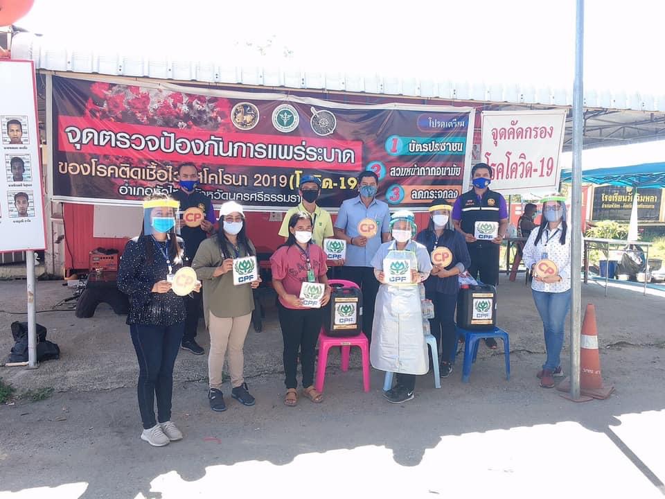 นอกจากนี้ยังนำแอลกอฮอล์70% และน้ำดื่มมอบให้กับด่านคัดกรองโควิด-19 ที่จุดตรวจบ้านฉิมหลา อ.หัวไทร จ.นครศรีฯ และ บ้านท่าเข็น อ.ระโนด จ.สงขลา
