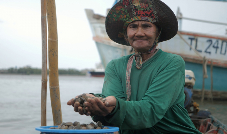 เสียงสะท้อนจากชาวบ้าน ต.บางหญ้าแพรก จ.สมุทรสาคร ที่มีอาชีพประมง ได้อานิสงส์จากปริมาณสัตว์น้ำในพื้นที่เพิ่มขึ้น ทำให้มีรายได้และความเป็นอยู่ที่ดีขึ้น “คุณป้าเตือนใจ ฟักอยู่ หรือคุณป้าหน่อย” อายุ 56 ปี และ “คุณลุง วันเพ็ญ มนัส” อายุ 69 ปี สองสามีภรรยาซึ่งอาศัยอยู่ในพื้นที่หมู่ 5 ตำบลบางหญ้าแพรก จ.สมุทรสาคร มีอาชีพงมหอยขายมากว่า 30 ปี คุณลุงวันเพ็ญ เล่าว่า ช่วง 4-5 ปีมานี้ สภาพป่าชายเลนในพื้นที่อุดมสมบูรณ์กว่าเมื่อก่อนที่ไม่มีป่า ไม่มีต้นไม้ สัตว์น้ำต่างๆก็หายไปด้วย แต่เมื่อป่ากลับคืนมา ก็กลายเป็นแหล่งอาศัยของสัตว์น้ำ คนในพื้นที่ที่มีอาชีพประมง หากุ้ง หอย ปู ปลา ได้ปริมาณเพิ่มขึ้น โดยที่ไม่ต้องออกเรือไปไกลๆเหมือนเมื่อก่อน ลุงมีอาชีพงมหอยก็หารายได้ได้เพิ่มขึ้น งมหอยได้ต่อวันประมาณ 7-10 กิโลกรัม ถ้าเป็นหอยแครงขนาดใหญ่ ขายได้กิโลกรัมละ 140 บาท ถ้าเป็นตัวเล็ก จะขายได้ประมาณกิโลกรัมละ 80 บาท ทำให้มีรายได้วันละ 1 พันกว่าบาท ดีกว่าเมื่อก่อนที่ราคาหอยไม่ดีและงมได้ไม่มาก