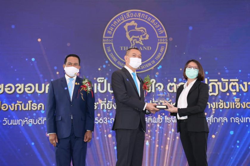 คุณเฉลิมชัย ศรีอ่อน รัฐมนตรีว่าการกระทรวงเกษตรและสหกรณ์ มอบโล่ประกาศเกียรติคุณเพื่อเชิดชูเกียรติ “ผู้ทำคุณประโยชน์ ในการป้องกัน ASF ในสุกร” แก่ บริษัท เจริญโภคภัณฑ์อาหาร จำกัด (มหาชน) หรือ ซีพีเอฟ ในฐานะผู้ร่วมสนับสนุนงบประมาณเพื่อการป้องกันและควบคุมโรค ส่งผลให้มาตรการเฝ้าระวัง ป้องกัน และควบคุมโรคแอฟริกันสไวน์ฟีเวอร์ หรือ ASF ในสุกร ดำเนินไปอย่างเข้มแข็ง นับเป็นส่วนสำคัญทำให้ประเทศไทยยังคงสถานะประเทศเดียวในภูมิภาคเอเชียที่ปลอดจากโรคดังกล่าว มานานกว่า 2 ปี และยังคงเดินหน้าป้องกันอย่างเข้มงวดต่อไป