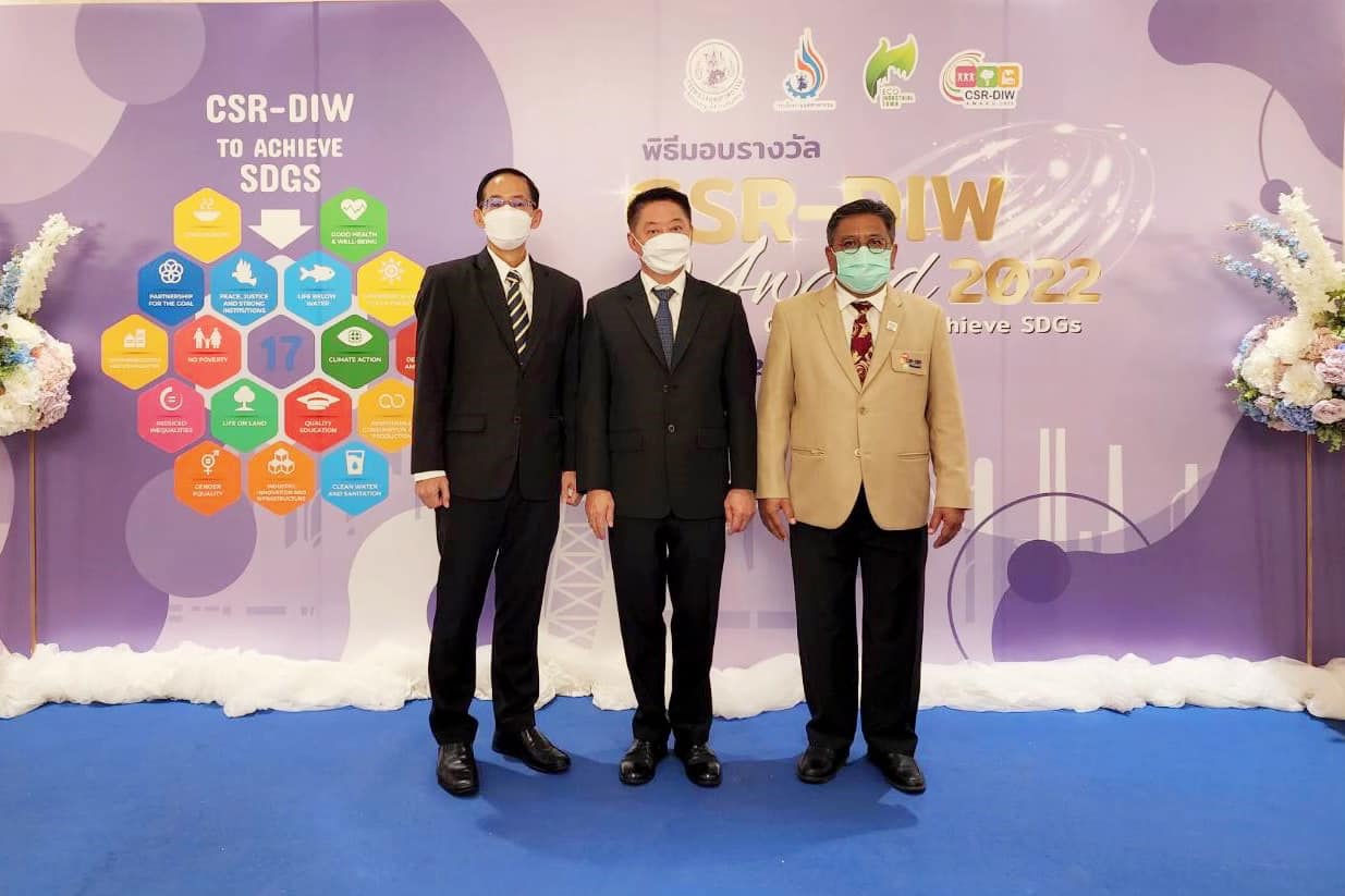 คุณวันชัย พนมชัย อธิบดีกรมโรงงานอุตสาหกรรม มอบโล่รางวัลและเกียรติบัตร CSR-DIW Continuous Award 2022 ในโครงการส่งเสริมโรงงานอุตสาหกรรมให้มีความรับผิดชอบต่อสังคมและชุมชนเพื่อเป้าหมายการพัฒนาอย่างยั่งยืน (CSR-DIW to achieve SDGs) ประจำปี 2565 จัดโดย กรมโรงงานอุตสาหกรรม ให้แก่ 27 สถานประกอบการของ CPF ต่อเนื่องเป็นปีที่ 14