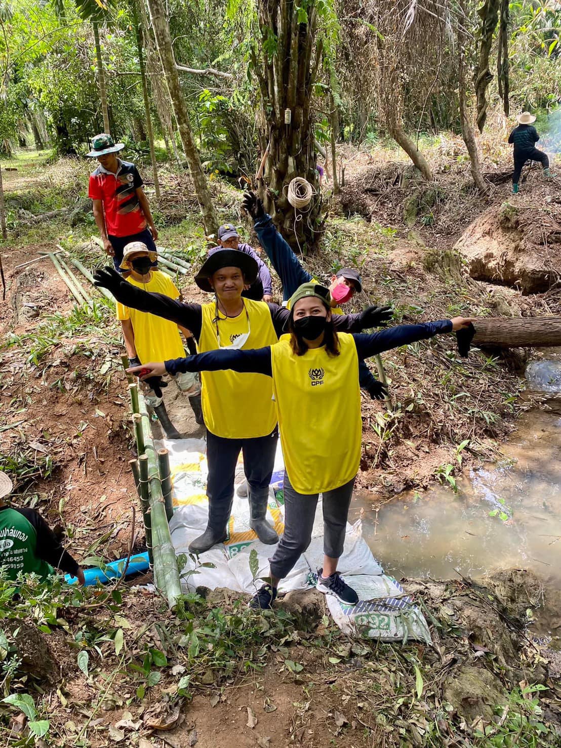 คุณอาลัยลา ภักดี พร้อมด้วย ชาว CPF จิตอาสา ศูนย์ปรับปรุงพันธุกรรมกุ้งปะทิว ผนึกกำลัง จ.ชุมพร ร่วมกันปลูกต้นไม้และสร้างฝาย ณ บ้านบางเสียบ ม.4 ต.บางสน อ.ปะทิว ภายใต้โครงการ “อบรมเยาวชนและประชาชนร่วมปกป้องผืนป่าและทรัพยากรธรรมชาติ ประจำปี 2565” เพื่อบูรณาการทุกภาคส่วนให้มีส่วนร่วมในการป้องกันและแก้ไขปัญหาการบุกรุกทำลายป่าไม้และทรัพยากรธรรมชาติอย่างยั่งยืน จัดโดย กองอำนวยการรักษาความมั่นคงภายในราชอาณาจักร (กอ.รมน.) จ.ชุมพร โดยมี นายอภิชาติ ศรีสุทธิ์ ปลัดอำเภอหัวหน้าฝ่ายความมั่นคง อำเภอปะทิว เป็นประธานในพิธี และมีเครือข่ายต่างๆ เข้าร่วมกว่า 100 คน
