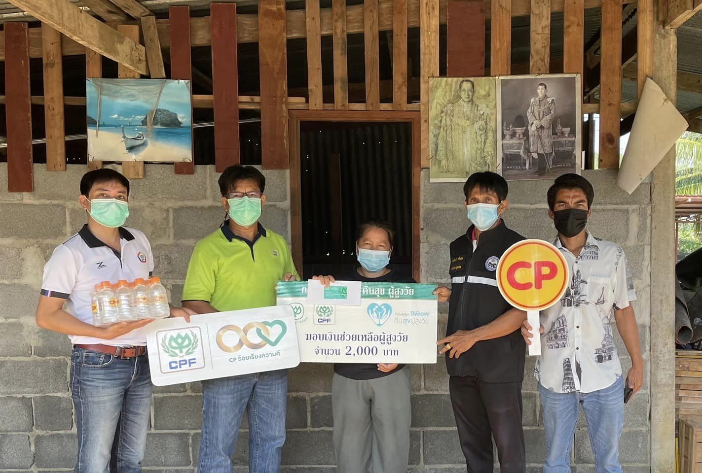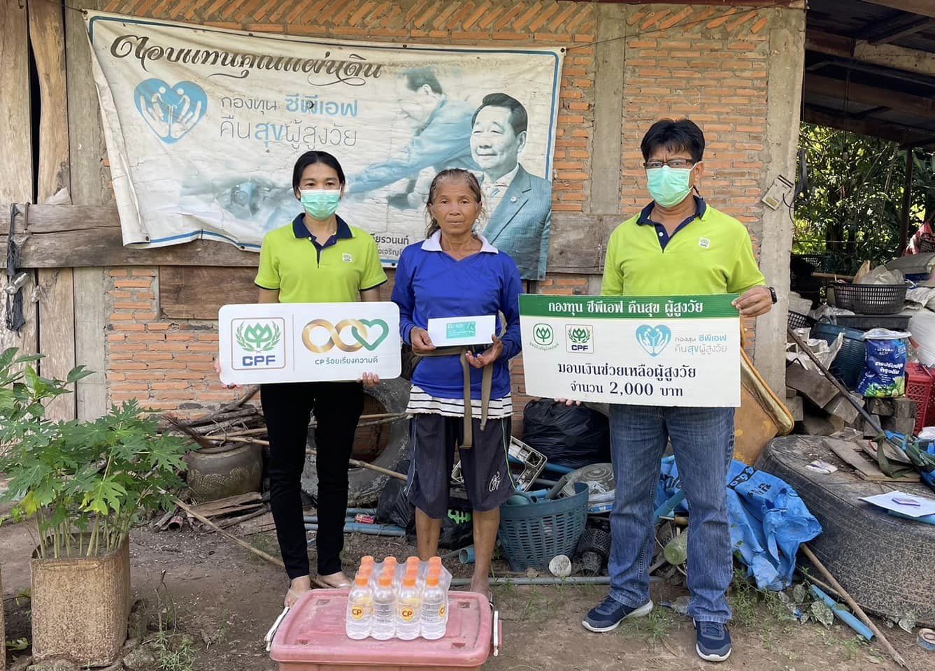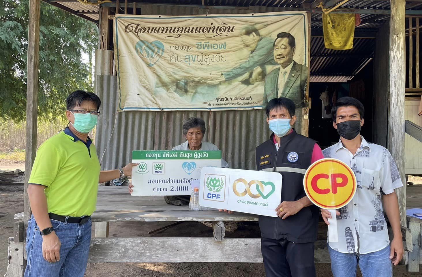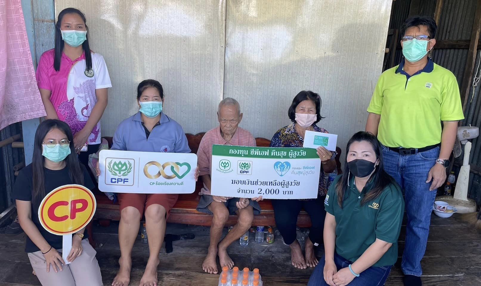 คุณวีระ เหลืองอร่าม ผู้จัดการทั่วไป พร้อมด้วยผู้จัดการฟาร์มและพนักงาน CPF ด้านชุมชนสัมพันธ์ ธุรกิจไก่เนื้อ 2 (กทม.) เดินหน้าโครงการ “ซีพีเอฟ คืนสุข ผู้สูงวัย” ออกเยี่ยม พร้อมมอบเงินช่วยเหลือและน้ำดื่มซีพีให้ผู้สูงวัย รวม 4 ท่าน ในพื้นที่ อ.กบินทร์บุรี จ.ปราจีนบุรี เพื่อบรรเทาความเดือดร้อนและใช้ดำรงชีพ
