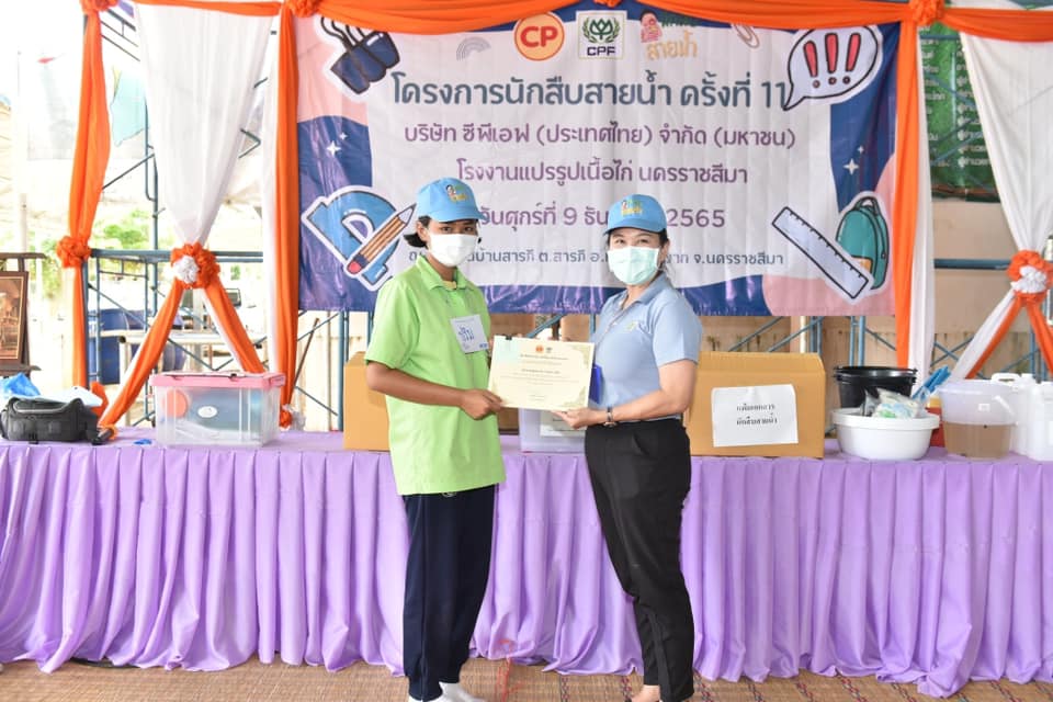 คุณดวงดาว สุวรรณโรจน์ ผู้จัดการสำนักห้องปฏิบัติการ นำพนักงาน CPF โรงงานแปรรูปเนื้อไก่ จ.นครราชสีมา ร่วมกับ รร.บ้านสารภี อ.หนองบุญมาก จ.นครราชสีมา เดินหน้า “โครงการนักสืบสายน้ำ” ครั้งที่ 11 โดยมีนักเรียน 100 ท่าน ร่วมดูและรักษาลำน้ำมูล โดยชาว CPF จิตอาสา ให้ความรู้และความเข้าใจเรื่องสิ่งแวดล้อม พร้อมลงพื้นที่ปฏิบัติจริงภาคสนาม ผ่านกิจกรรมส่องสัตว์น้ำ, กรองน้ำสะอาดง่ายๆ ด้วยวัสดุธรรมชาติ และตรวจลักษณะทางกายภาพของน้ำ เพื่อปลูกฝังให้เด็กและเยาวชนมีจิตสำนึกรักษ์ทรัพยากรธรรมชาติและสิ่งแวดล้อมในชุมชนของตนเอง สร้างคลื่นลูกใหม่เป็นเครือข่ายแนวร่วมในการป้องกันและรักษาลำน้ำมูล สอดคล้องตามนโยบายของบริษัทฯ ให้แต่ละสถานประกอบการของ CPF ส่งเสริมกิจกรรมการอนุรักษ์ทรัพยากรธรรมชาติอย่างต่อเนื่อง เพื่อบรรเทาผลกระทบต่อสิ่งแวดล้อม ควบคู่ไปกับการปกป้องความหลากหลายทางชีวภาพอย่างยั่งยืน ภายใต้ยุทธศาสตร์ด้าน “ดิน น้ำ ป่าคงอยู่”