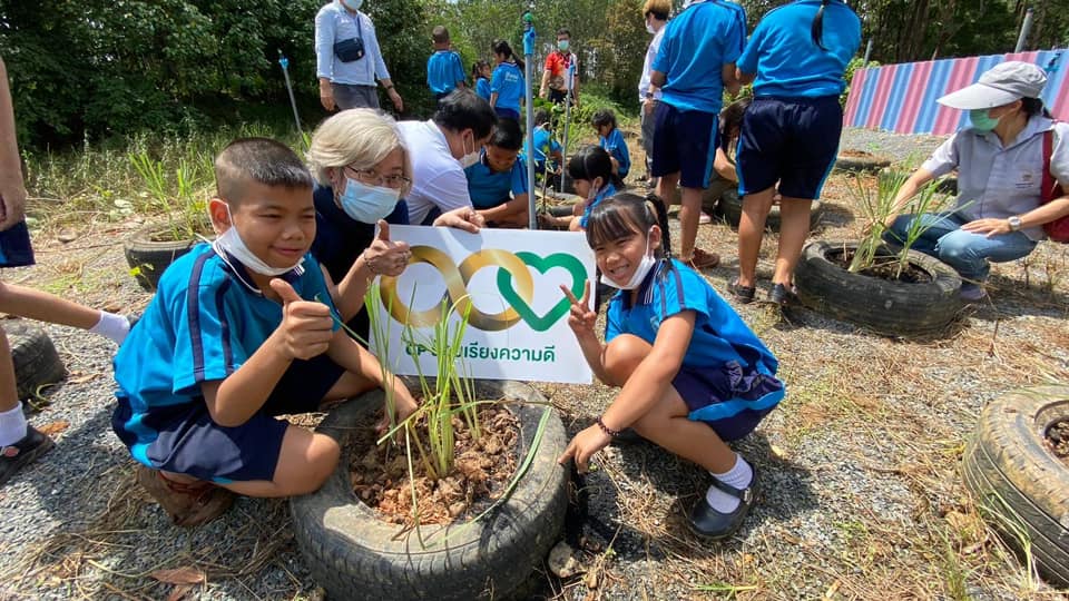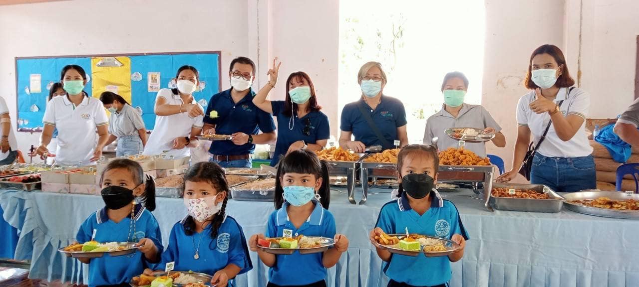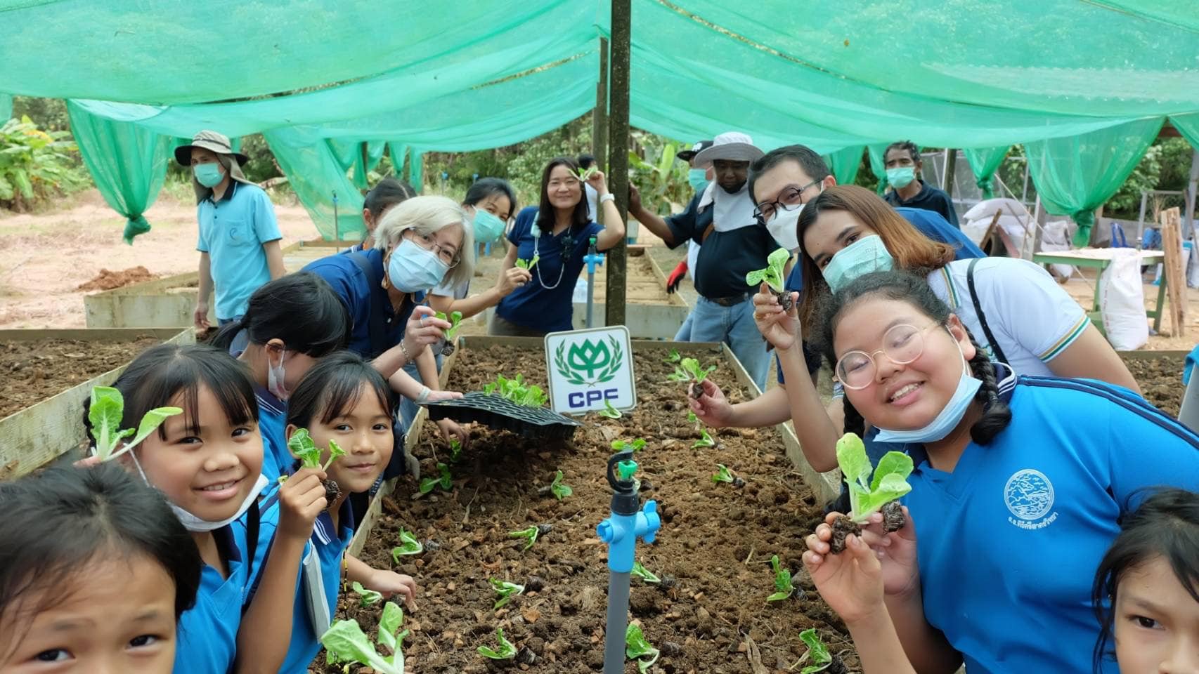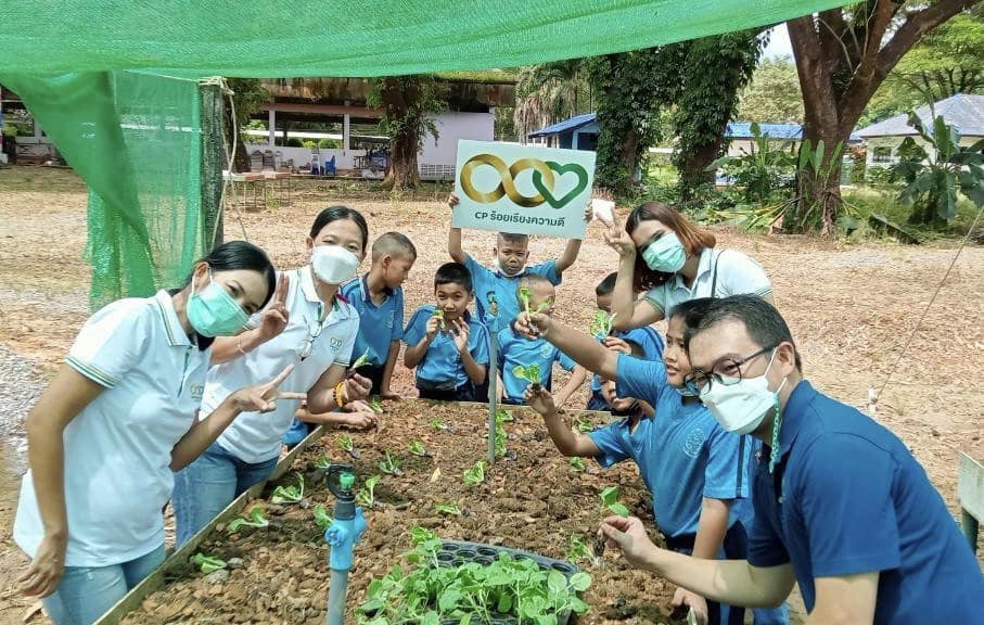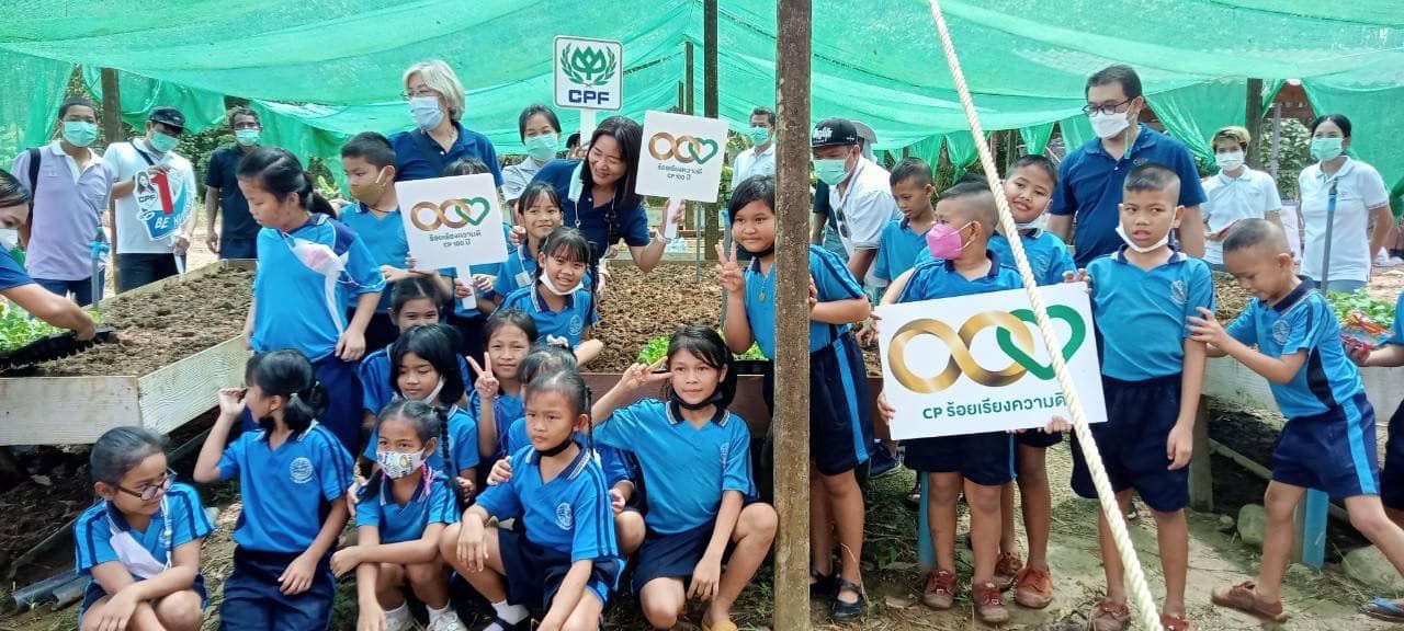 คุณบุศรินทร์ เลอเลิศภักดี รองกรรมการผู้จัดการ นำผู้บริหารและพนักงาน CPF โรงเพาะฟักลูกกุ้งภาคตะวันออก จ.ตราด เดินหน้าโครงการ “CPF อิ่มสุข ปลูกอนาคต” สร้างแปลงผักที่เป็นมิตรกับสิ่งแวดล้อมและส่งเสริมการปลูกผักสวนครัว เช่น ผักบุ้ง ผักกาด ตะไคร้ มะเขือ เพื่อให้เด็กและเยาวชนได้เข้าถึงอาหารคุณภาพ ปลอดภัย และเหมาะสมตามหลักโภชนาการ ตลอดจนพัฒนาให้เป็นแหล่งเรียนรู้ต้นแบบในโรงเรียนและชุมชนตามหลักปรัชญาเศรษฐกิจพอเพียง พร้อมทั้งเลี้ยงอาหารกลางวันนักเรียน รร.คีรีศรีสาครวิทยา ต.หนองบอน อ.บ่อไร่ จ.ตราด กว่า 300 คน และมอบทุนการศึกษาแก่น้องๆ ที่เรียนดีแต่ขาดแคลนทุนทรัพย์ จำนวน 50 ทุน เพื่อเพิ่มโอกาสทางการศึกษาแก่น้องๆ ลดภาระค่าใช้จ่ายโรงเรียนและครอบครัว โดยมี คุณนัฐพล นพเก้า ผู้อำนวยการ รร. ร่วมด้วย