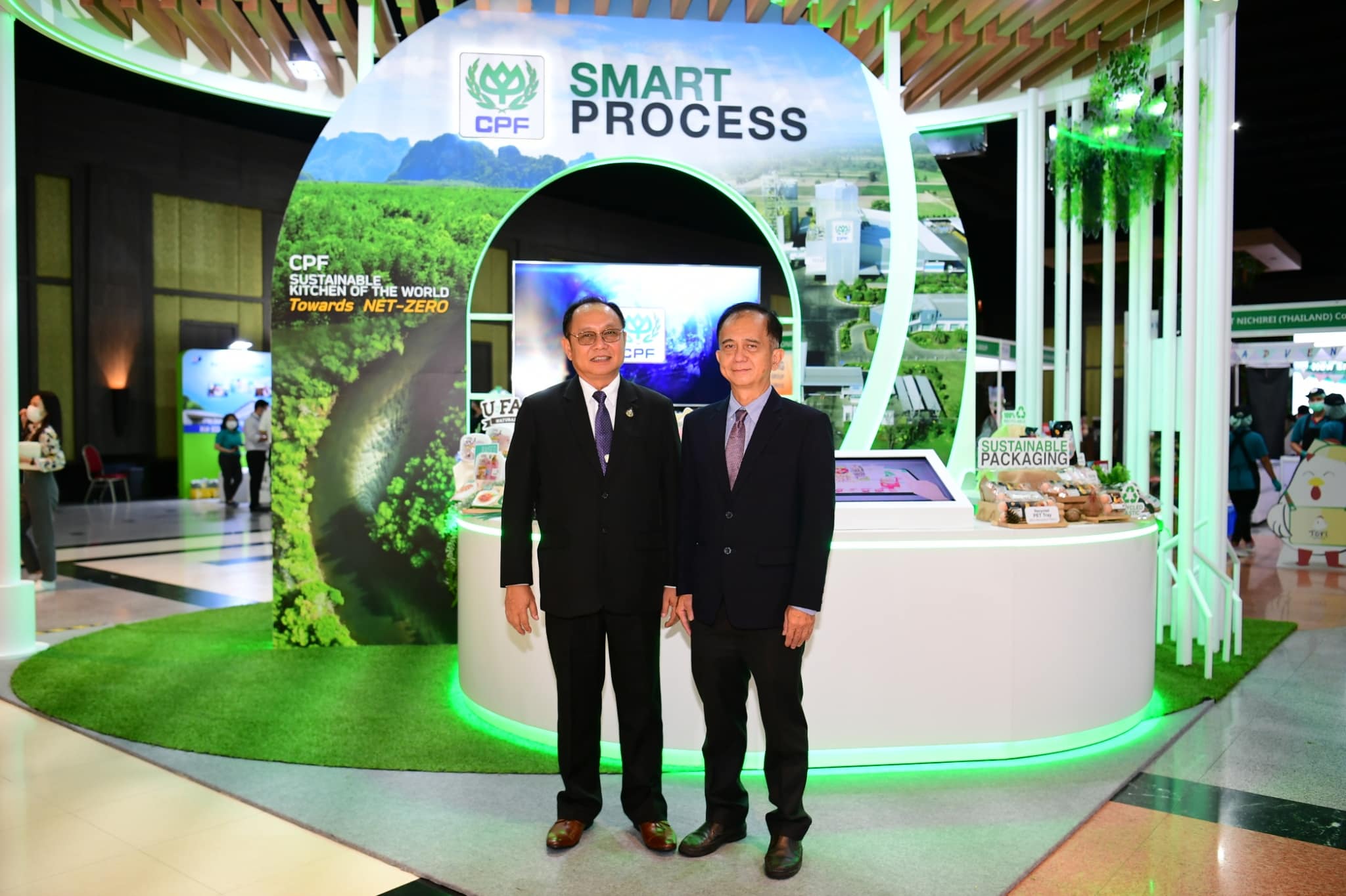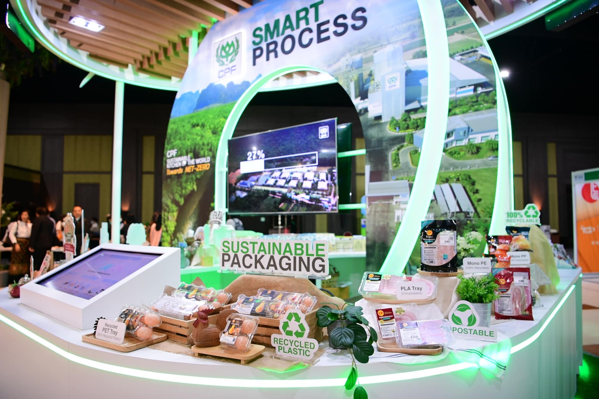 น.สพ.ปราโมทย์ ตาฬวัฒน์ รองกรรมการผู้จัดการ CPF กล่าวว่า บริษัทฯ ได้จัดบูธแสดงการดำเนินธุรกิจที่ให้ความสำคัญกับการพัฒนานวัตกรรมและเทคโนโลยี มาช่วยลดการใช้ทรัพยากร และสนับสนุนให้เกิดความปลอดภัยทางอาหาร ยกระดับมาตรฐานสินค้าปศุสัตว์ของประเทศไทยสู่สากล ภายใต้กระบวนการผลิตที่ลดการปล่อยก๊าซเรือนกระจก และเป็นมิตรต่อสิ่งแวดล้อม พร้อมทั้งเพิ่มประสิทธิภาพการผลิตอาหารตั้งแต่ต้นน้ำถึงปลายน้ำ เช่น การใช้ระบบเอไอ และออโตเมชัน (AI & AUTOMATION) ในกระบวนการผลิตอาหารสัตว์ในรูปแบบ “SMART FEED MILL” นวัตกรรมการเลี้ยงสัตว์และระบบฟาร์มป้องกันโรค ในรูปแบบ “SMART FARM” การผลิตอาหารและเครื่องดื่ม ภายใต้ “SMART FACTORY” ตามแนวทางระบบเศรษฐกิจหมุนเวียน สอดคล้องกับยุทธศาสตร์ด้าน BIO-CIRCULAR GREEN ECONOMY ของประเทศ