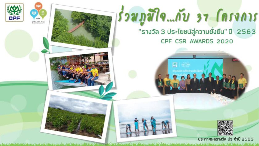 คณะกรรมการตัดสินรางวัล 3 ประโยชน์สู่ความยั่งยืน CPF CSR Awards พิจารณาตัดสินโครงการด้านความยั่งยืน ปี 2563 โดยคัคเลือกให้ 37 โครงการ ได้รับรางวัล CPF CSR Awards 2020 จากจำนวน 58 โครงการที่ส่งเข้าร่วม
