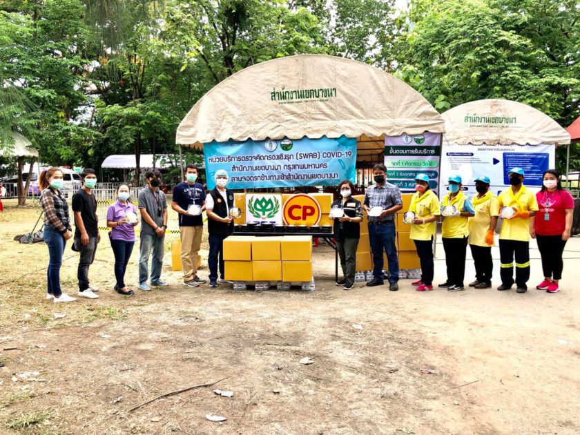 คุณโศรยา วัธชนะ ผู้อำนวยการเขตบางนา รับมอบอาหารสำเร็จรูปพร้อมทาน ในโครงการ “CPF ส่งอาหารจากใจ ร่วมต้านภัยโควิด-19″ ตามนโยบายเครือซีพี เพื่อเป็นกำลังใจและสนับสนุนการปฏิบัติภารกิจของเจ้าหน้าที่ หน่วยบริการตรวจคัดกรองเชิงรุก โควิด-19 สำนักงานเขตบางนา กรุงเทพฯ ในการเฝ้าระวังและป้องกันแพร่ระบาดของโรคโควิด โดยมี คุณธงชัย ชยชฎานันท์ ผู้ช่วยกรรมการผู้จัดการ CPF โรงงานแปรรูปเนื้อไก่-เป็ด บางนา กม.2.5 เป็นผู้แทนบริษัทฯ มอบ