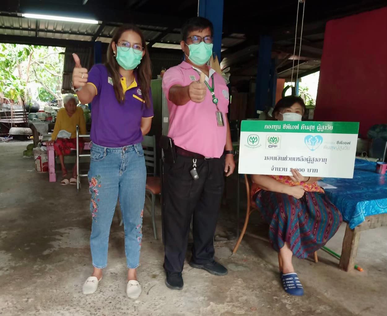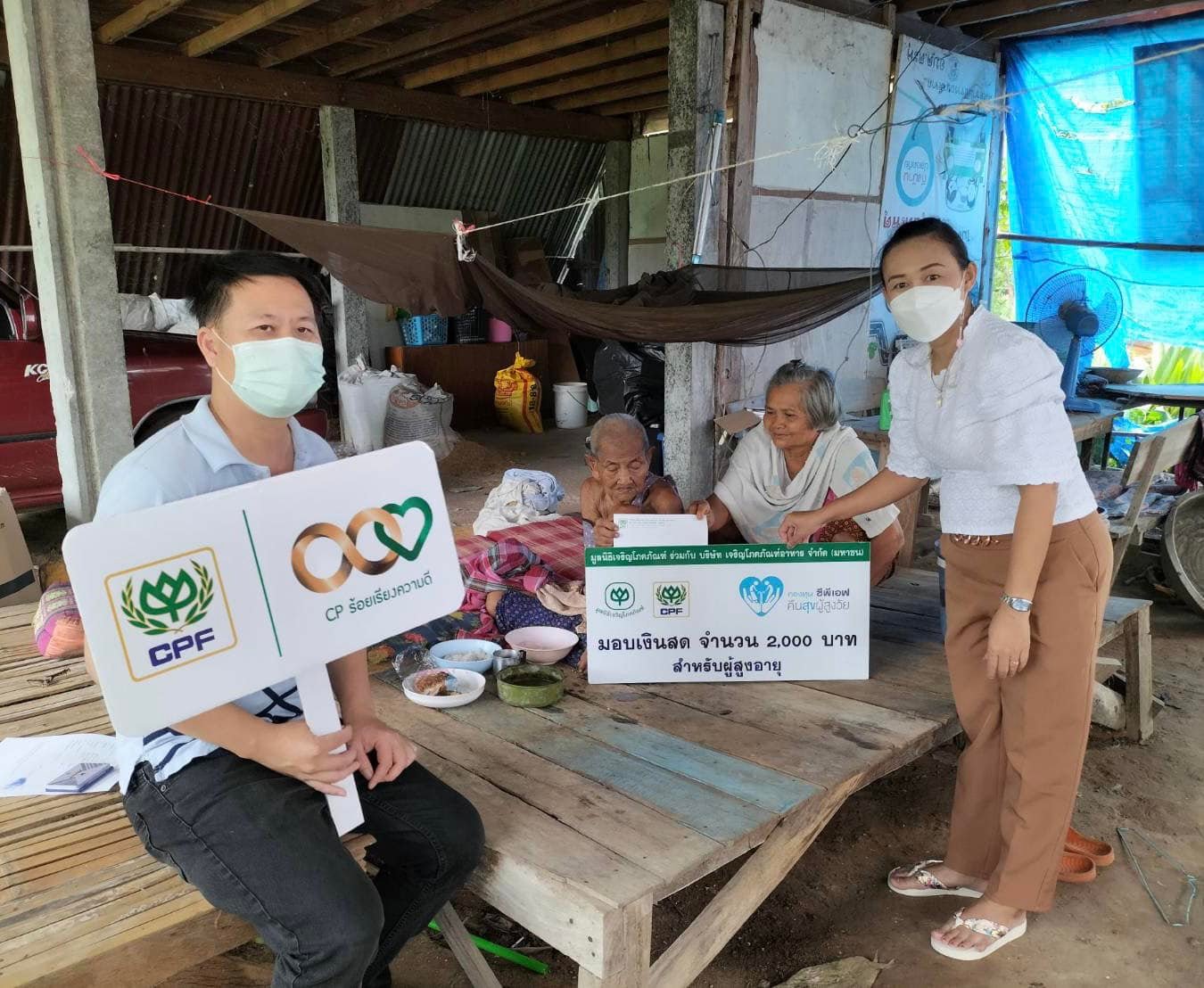 คุณภัครดา แสนสง่า ผู้จัดการสำนักธุรการ ภาคอีสาน 2 นำชาว CPF โรงงานผลิตอาหารสัตว์ปักธงชัย ร่วมกับ คุณพีรชยา ปิณฑวรรธนะ พยาบาลวิชาชีพชำนาญการ และ คุณอธิสรา ไชยลาภ นักพัฒนาชุมชนชำนาญการ ออกเยี่ยม ตรวจสุขภาพ และมอบน้ำดื่มซีพี รวมทั้งเงินช่วยเหลือแก่ผู้สูงวัย ในโครงการ “ซีพีเอฟ คืนสุข ผู้สูงวัย” รวม 4 ท่าน 4 ชุมชน ในพื้นที่ อ.ปักธงชัย ได้แก่ หนองนมนาง, ไผ่ศรีสุข, บ้านหนองตาด และ สุขัง (ไทยเจริญ)