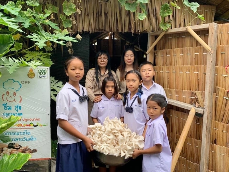 “โรงเรียนเข้าร่วมโครงการซีพีเอฟ อิ่ม สุข ปลูกอนาคต ทำให้ผลิตอาหารได้เองและสามารถจัดเมนูอาหารกลางวันที่มีวัตถุดิบจากผัก เห็ด ฝและไข่ไก่เป็นส่วนผสม เช่น ต้มยำเห็ด ผัดเห็ด เห็ดทอด ยำเห็ด บะหมี่น้ำ สุกี้น้ำ นักเรียนเข้าถึงอาหารที่มีคุณภาพ สะอาด ปลอดภัย เด็กนักเรียนที่มีภาวะโภชนาการสมวัยตามเกณฑ์ คือ มีน้ำหนักและส่วนสูงตามเกณฑ์ มีจำนวนเพิ่มขึ้น” คุณครูเอ็ม กล่าว