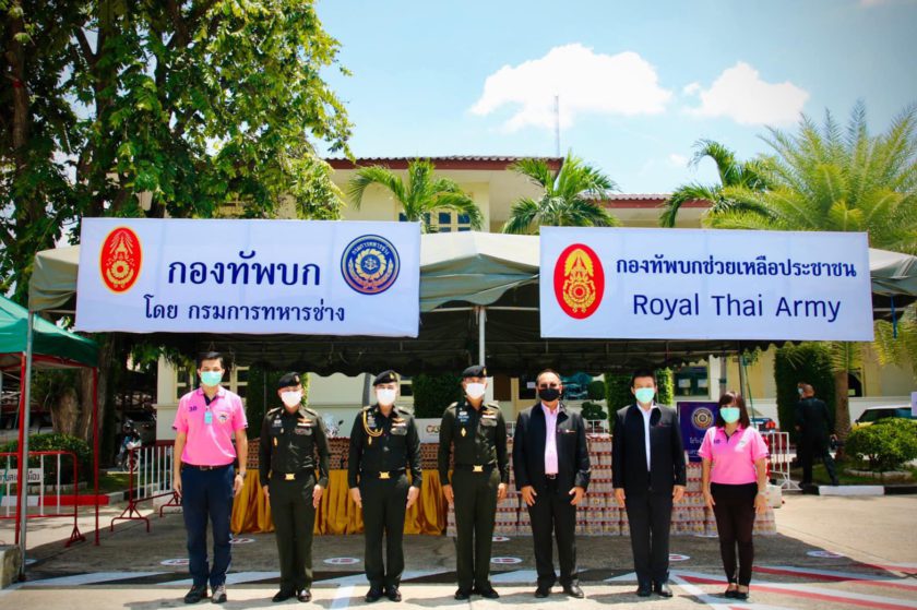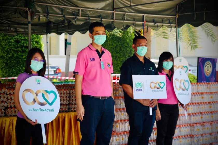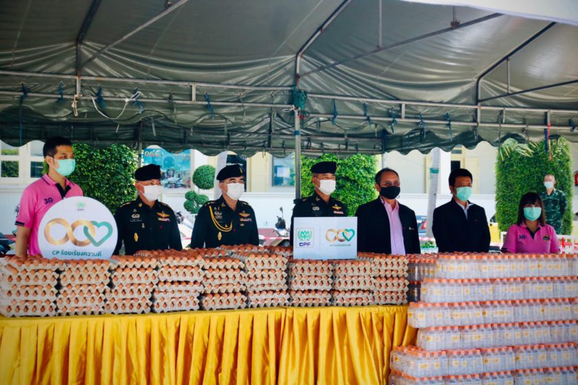 น.สพ.ปราโมทย์ ตาฬวัฒน์ รองกรรมการผู้จัดการ พร้อมด้วย คุณอดิศร เดชอัคราช ผู้ช่วยกรรมการผู้จัดการ และชาว CPF โรงงานผลิตอาหารสัตว์ราชบุรี เป็นผู้แทนบริษัทฯ มอบผลิตภัณฑ์จาก CPF ได้แก่ ไข่ไก่ 3,000 ฟอง และน้ำดื่ม 3,000 ขวด ในโครงการ “CPF ส่งอาหารจากใจ ร่วมต้านภัยโควิด-19” ตามนโยบายเครือซีพี เพื่อช่วยเหลือและบรรเทาความเดือดร้อนให้กับกำลังพล กรมการทหารช่าง ค่ายภาณุรังษี จ.ราชบุรี ที่ได้รับผลกระทบจากสถานการณ์โควิด-19 โดยมี พล.ต.บัญชา อาจคำพันธุ์ รองเจ้ากรมการทหารช่าง รับมอบ
