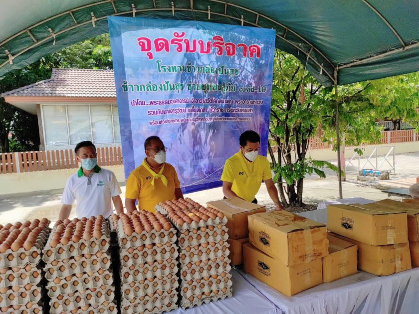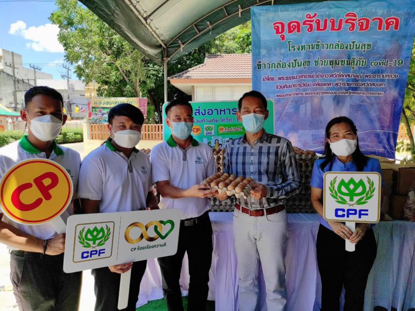คุณจารุวัฒน์ เกลี้ยงเกลา ผู้ว่าราชการจังหวัดสงขลา รับมอบไข่ไก่ 2,000 ฟอง จาก CPF ในโครงการ “CPF ส่งอาหารจากใจ ร่วมต้านภัยโควิด-19” ตามนโยบายเครือซีพี เพื่อนำไปประกอบอาหารปรุงสุกพร้อมทาน แจกจ่ายให้กับชาวสงขลา บรรเทาความเดือดร้อนในช่วงสถานการณ์โควิด ผ่านโรงทานข้าวกล่องปันสุข โดยมี คุณวรวิทย์ ชีวนิชพันธ์ ผู้จัดการฝ่ายธุรการ นำชาว CPF จิตอาสา โรงงานผลิตอาหารสัตว์บก และธุรกิจไก่ไข่ภาคใต้ เป็นผู้แทนบริษัทฯ ร่วมมอบ ณ วัดโคกสมานคุณ อ.หาดใหญ่ จ.สงขลา