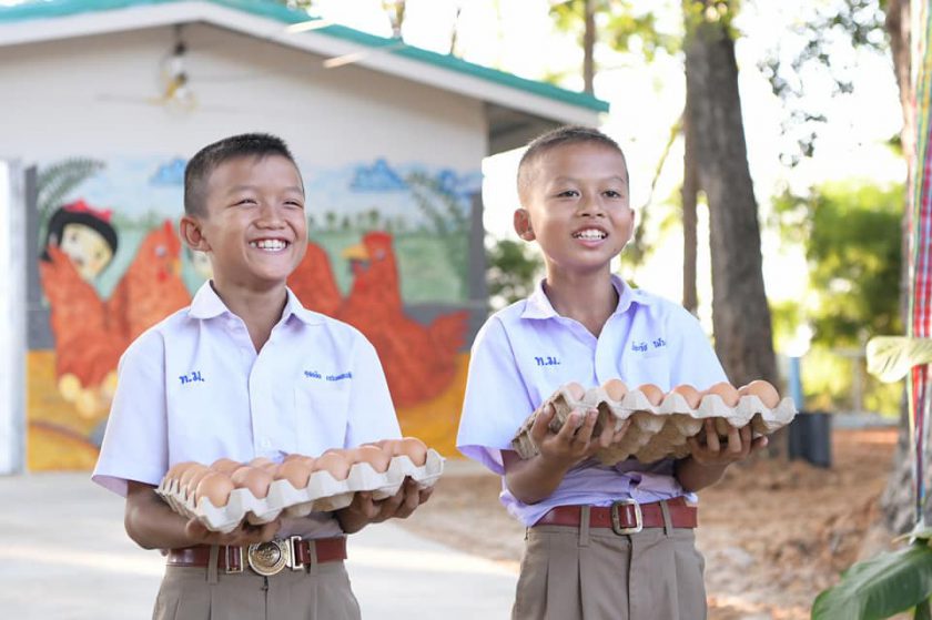 มูลนิธิฯ ดำเนินโครงการเลี้ยงไก่ไข่เพื่ออาหารกลางวันนักเรียน มาตั้งแต่ปี 2532 จนถึงปัจจุบันมีโรงเรียนที่เข้าร่วมโครงการ 855 โรงเรียน ทั่วประเทศ โดย รร.บ้านทุ่งมน เป็นลำดับที่ 856