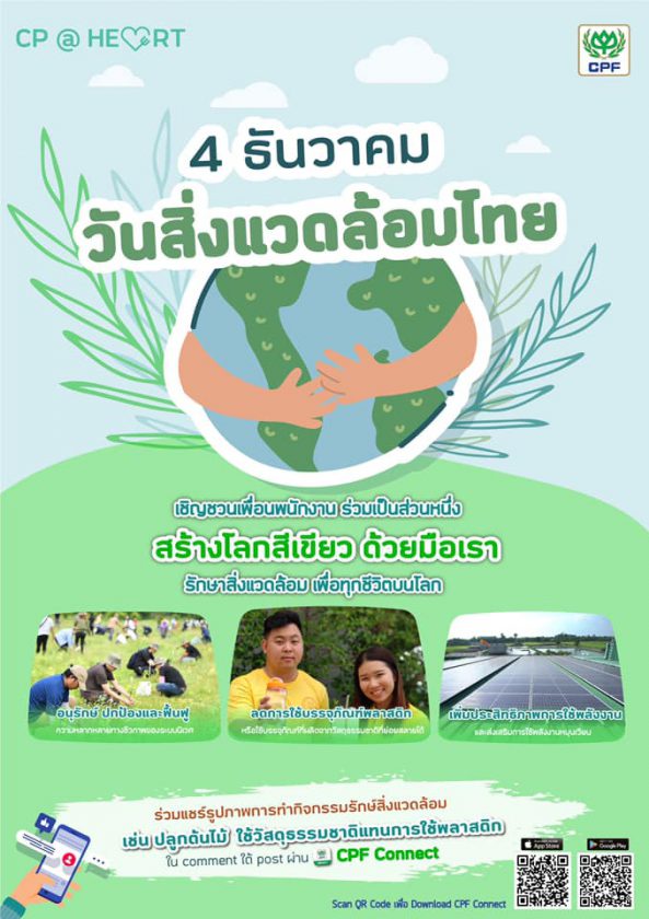 CPF ในฐานะบริษัทผู้ผลิตอาหารชั้นนำระดับโลก ดำเนินธุรกิจควบคู่กับความรับผิดชอบต่อสังคมและการมีส่วนร่วมบรรเทาผลกระทบต่อสิ่งแวดล้อม รวมทั้งส่งเสริมพนักงานตระหนักรู้ในเรื่องดังกล่าวผ่านการทำกิจกรรมต่างๆ