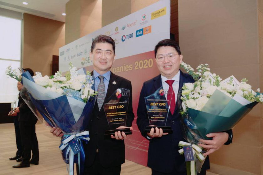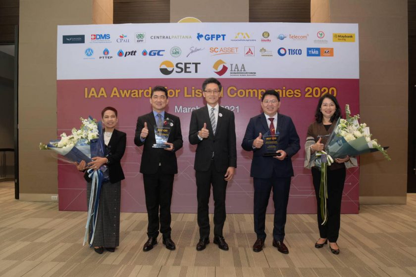 คุณสุพัฒนพงษ์ พันธ์มีเชาว์ รองนายกฯ และ รมว.พลังงาน มอบรางวัล IAA Awards for Listed Companies 2020 ประเภทรางวัล CEO ยอดเยี่ยมกลุ่มเกษตรและอุตสาหกรรมอาหาร ปี 2020 แก่ CEO คุณประสิทธิ์ บุญดวงประเสริฐ และ ประเภทรางวัล CFO ยอดเยี่ยมกลุ่มเกษตรและอุตสาหกรรมอาหาร ปี 2020 แก่ คุณไพศาล จิระกิจเจริญ ประธานผู้บริหารฝ่ายการเงิน CPF โดยมี ดร.ภากร ปีตธวัชชัย กรรมการและผู้จัดการ ตลาดหลักทรัพย์แห่งประเทศไทย คุณไพบูลย์ นลินทรางกูร นายกสมาคมนักวิเคราะห์การลงทุน (IAA) และ คุณสมบัติ นราวุฒิชัย เลขาธิการและกรรมการผู้อำนวยการสมาคมนักวิเคราะห์การลงทุน ร่วมแสดงความยินดี ณ ตลาดหลักทรัพย์แห่งประเทศไทย ถ.รัชดาภิเษก