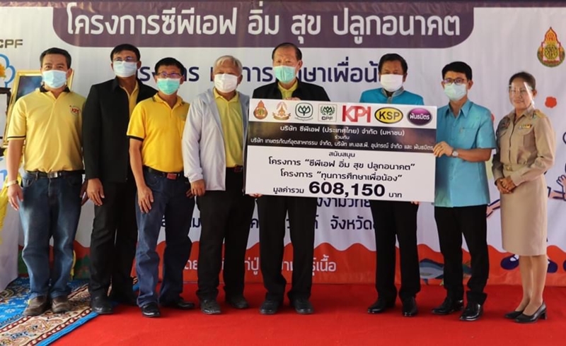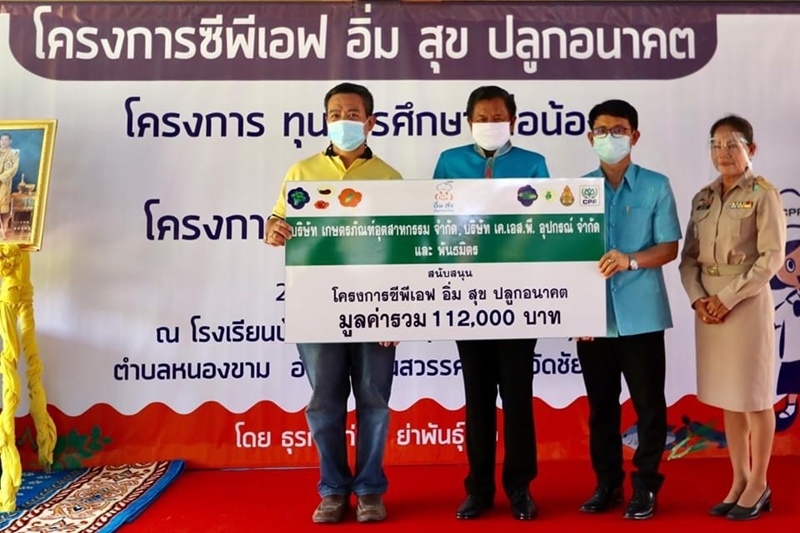 เมื่อวันที่ 28 สิงหาคม 2563 ที่ผ่านมา ทีมงานกลุ่มธุรกิจปู่-ย่าพันธุ์เนื้อ ซีพีเอฟ ร่วมกับบริษัท เกษตรภัณฑ์อุตสาหกรรม จำกัด บริษัท เค.เอส.พี. อุปกรณ์ จำกัด และบริษัทคู่ค้า ร่วมกัน ลงพื้นที่โรงเรียนบ้านหนองขาม (ทองงามวิทยา) จ.ชัยภูมิ ดำเนินโครงการซีพีเอฟ อิ่ม สุข ปลูกอนาคต , โครงการอุ่นกาย คลายทุกข์ และมอบทุนการศึกษาให้กับน้องๆ โดยในครั้งนี้ทางบริษัทฯ ได้มอบทุนการศึกษาและเงินสนับสนุนโครกงการกว่า 6 แสนบาท